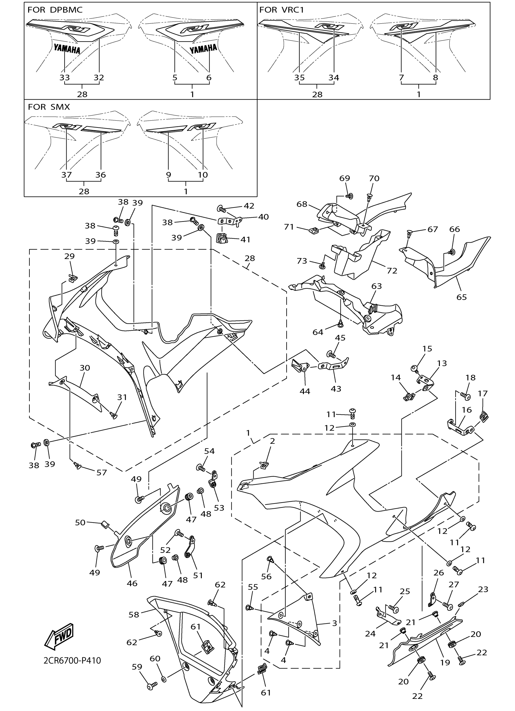 Yamaha YZFR1FR (YZFR1) 2CR31 2015 COWLING 2 Diagram