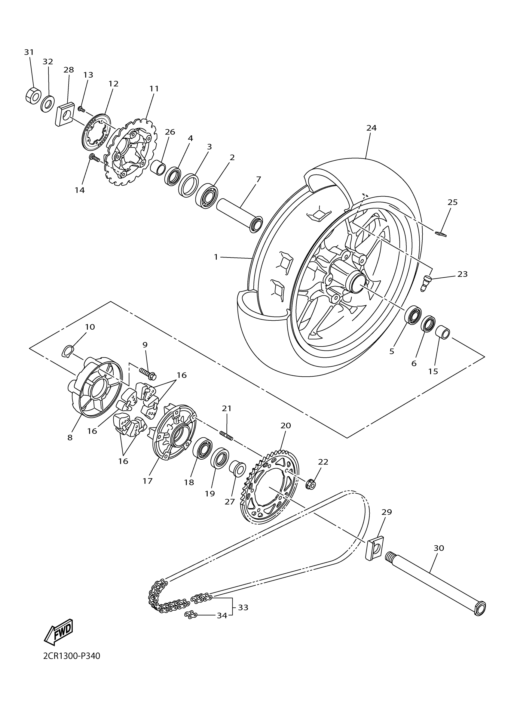 Yamaha YZFR1FR (YZFR1) 2CR31 2015 REAR WHEEL Diagram