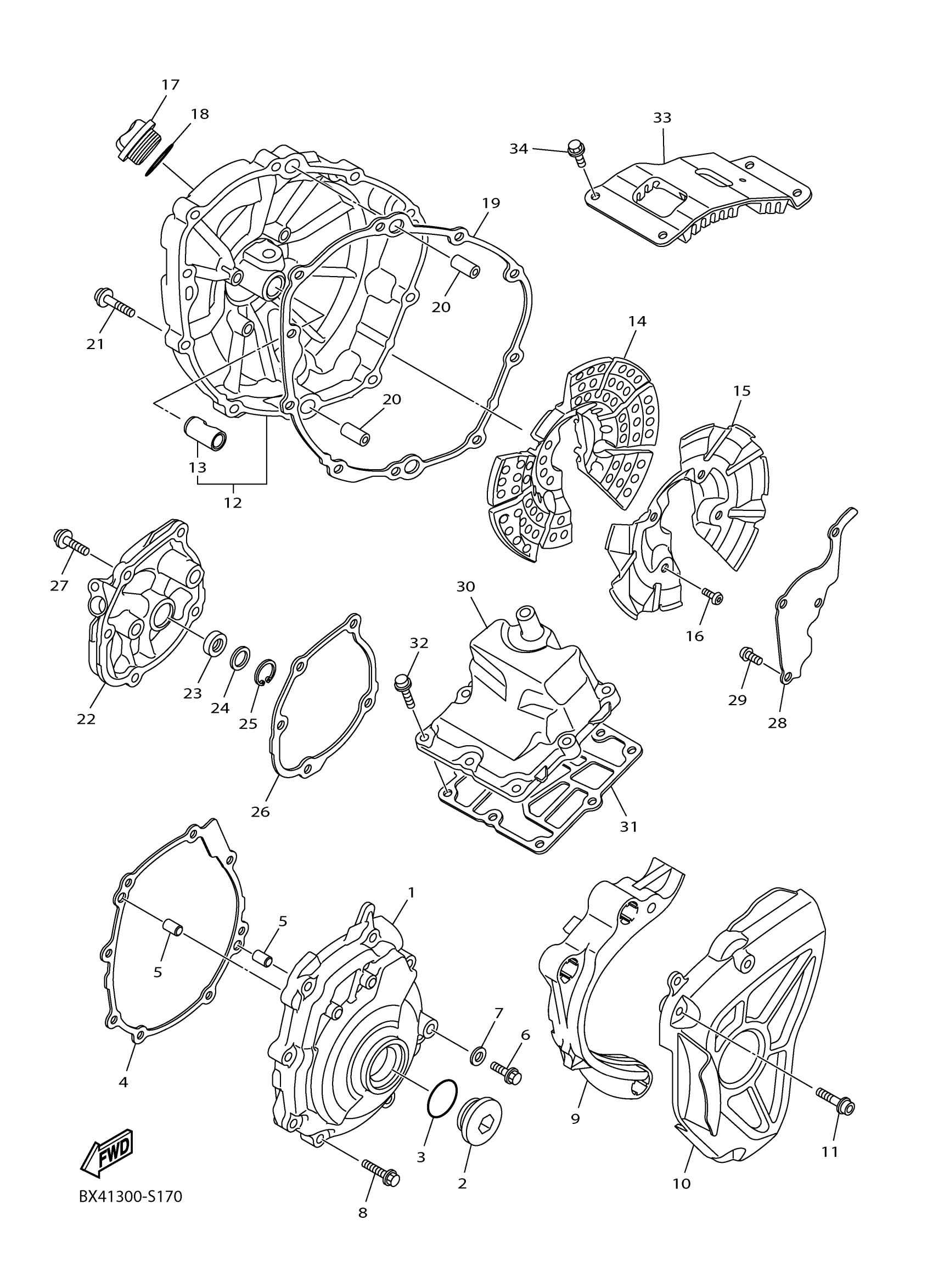 Yamaha YZFR1HL (YZFR1) BX420 2017 CRANKCASE COVER 1 Diagram