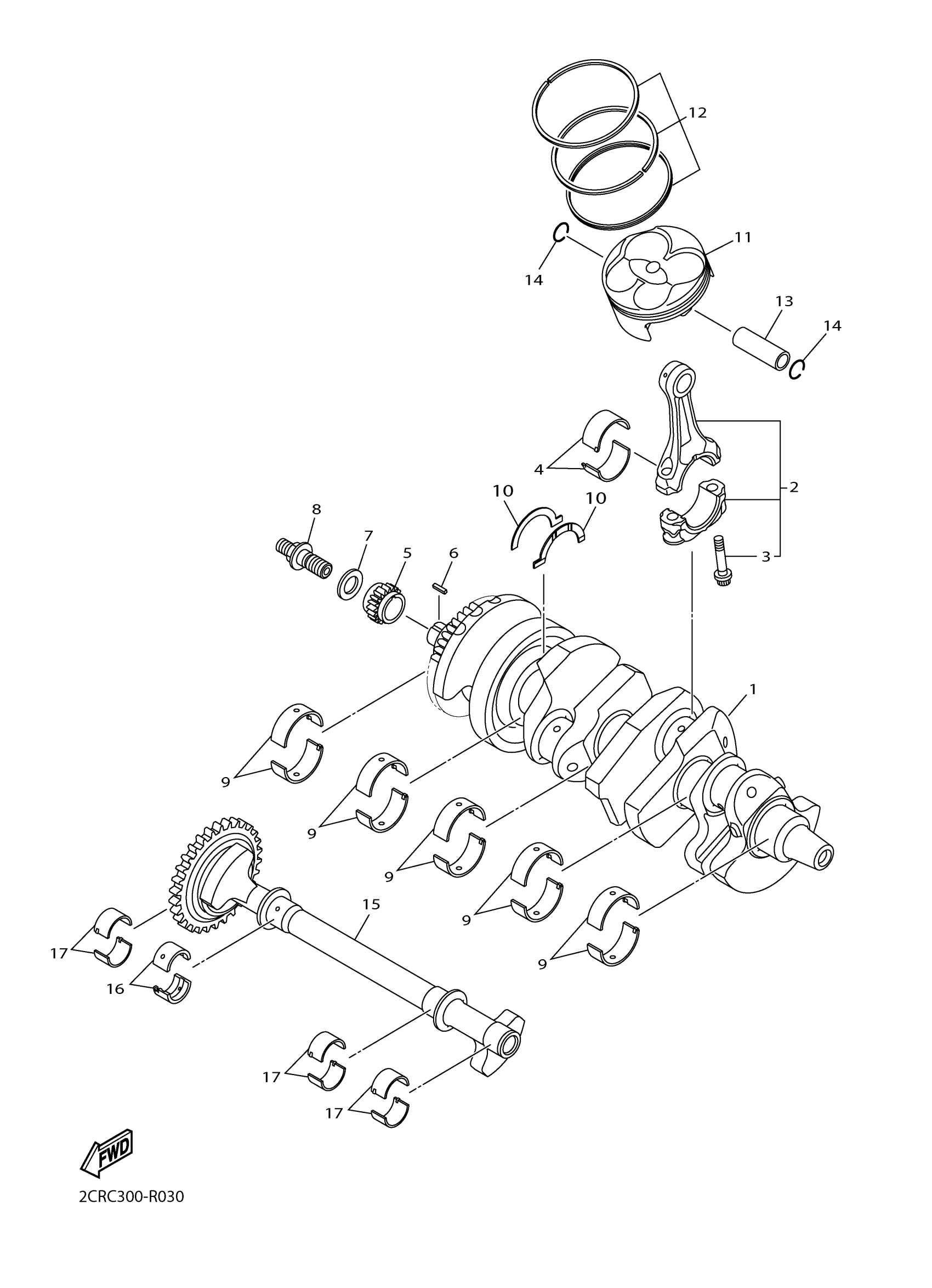 Yamaha YZFR1JL (YZFR1) BX470 2018 CRANKSHAFT PISTON Diagram