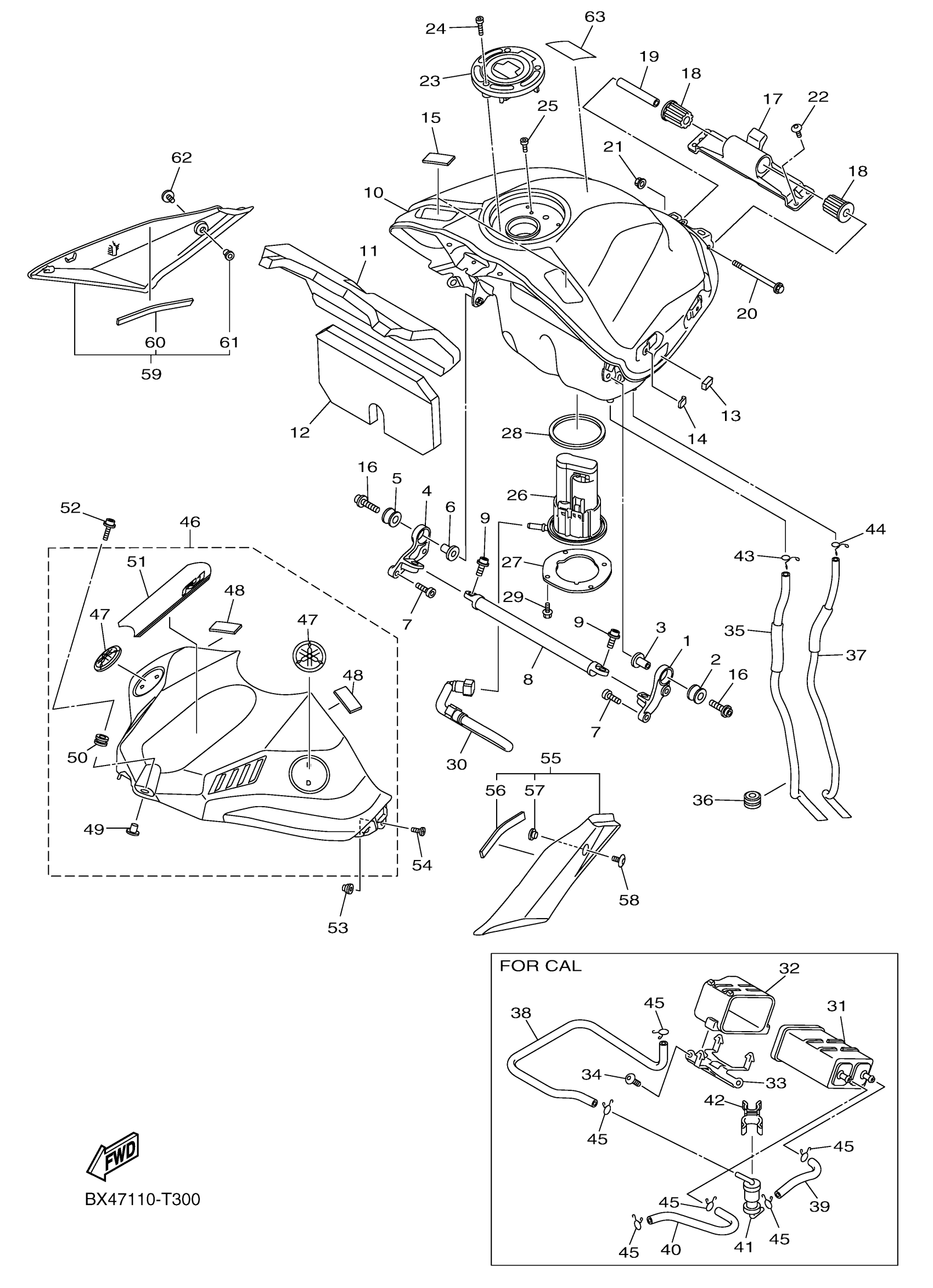 Yamaha YZFR1JL (YZFR1) BX470 2018 FUEL TANK Diagram