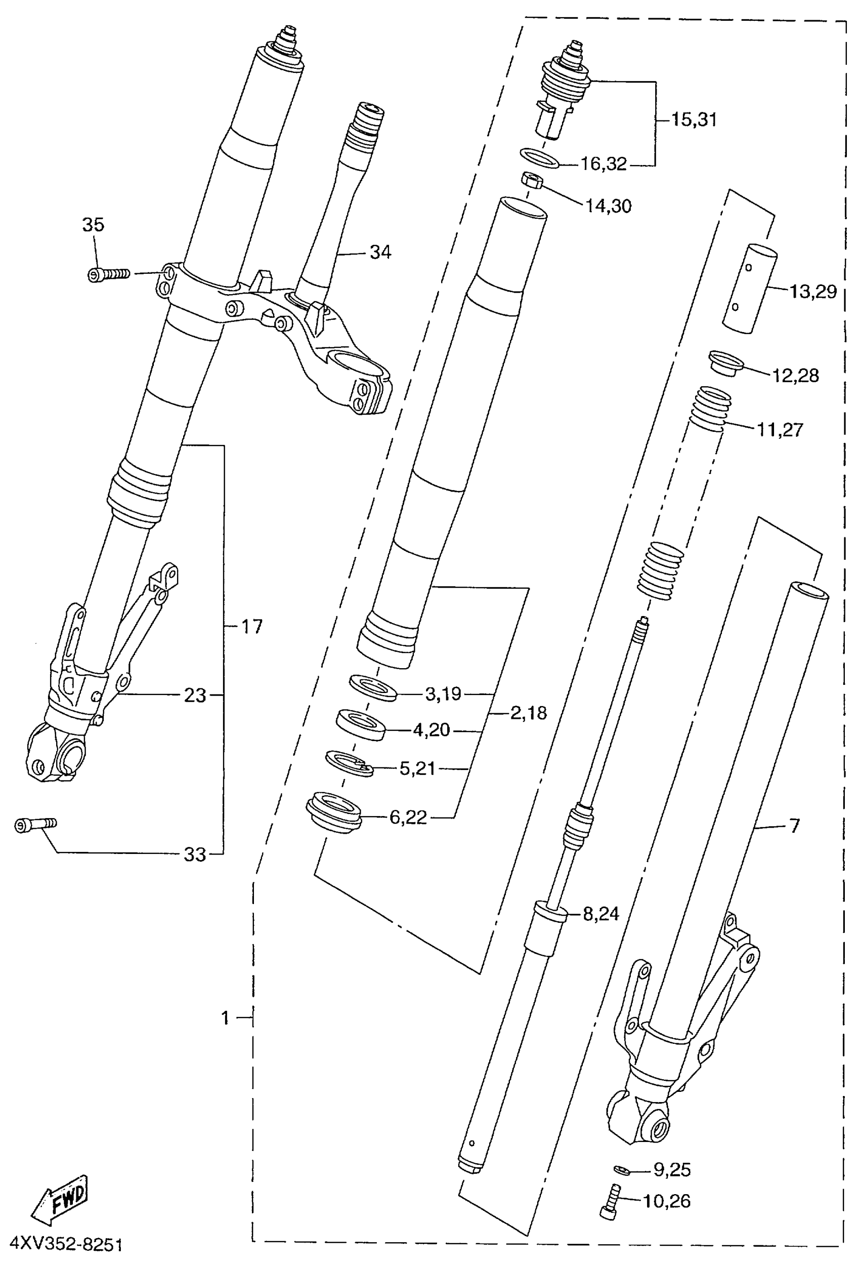 Yamaha YZFR1LC (YZFR1 CA) 4XVB 1999 FRONT FORK Diagram