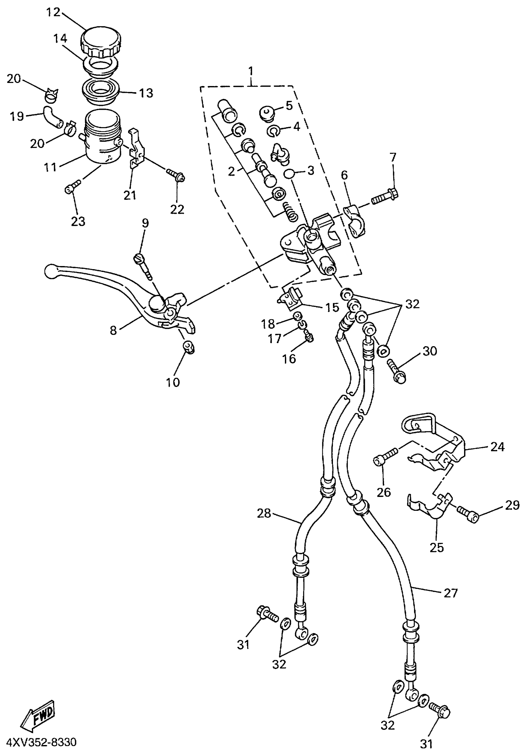 Yamaha YZFR1LC (YZFR1 CA) 4XVB 1999 FRONT MASTER CYLINDER Diagram