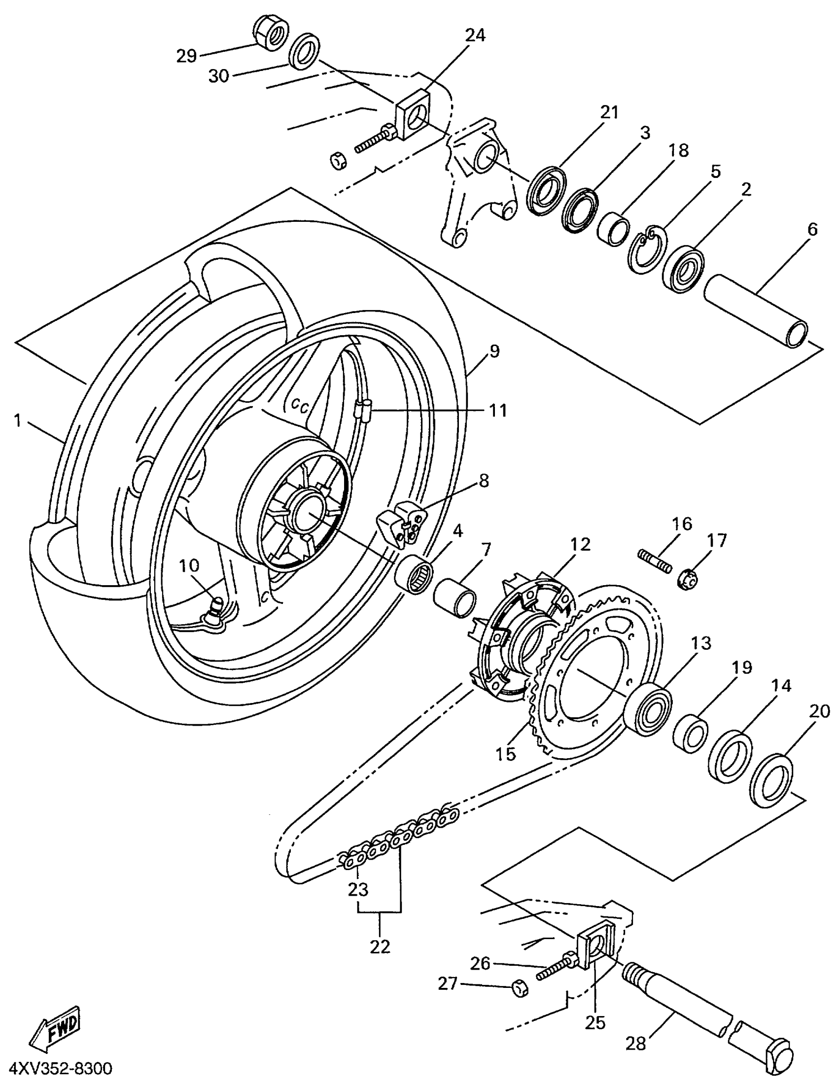 Yamaha YZFR1LC (YZFR1 CA) 4XVB 1999 REAR WHEEL Diagram