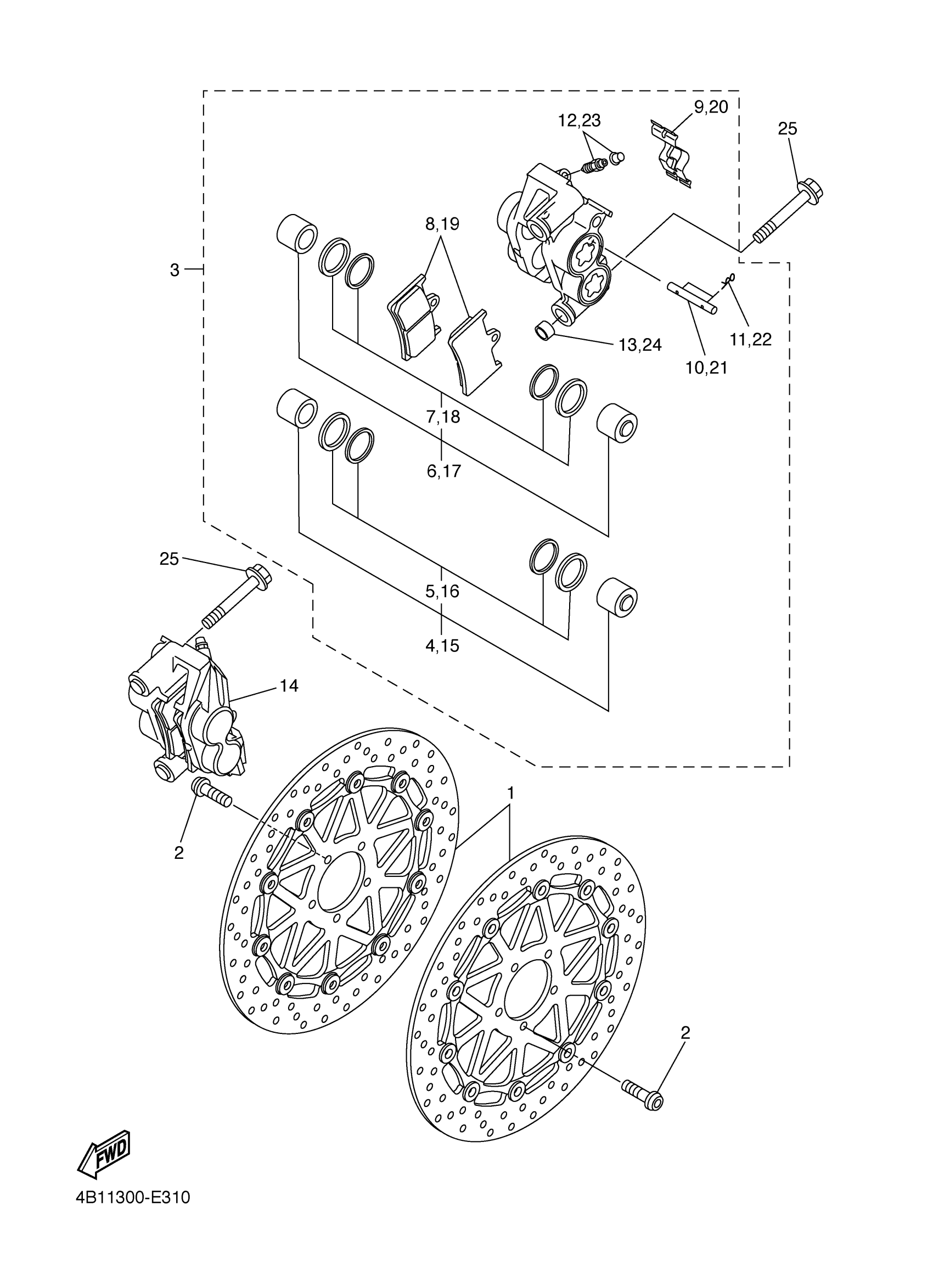 Yamaha YZFR1LEVC (YZFR1 Limited Edition CA) 4B15 2006 FRONT BRAKE CALIPER Diagram