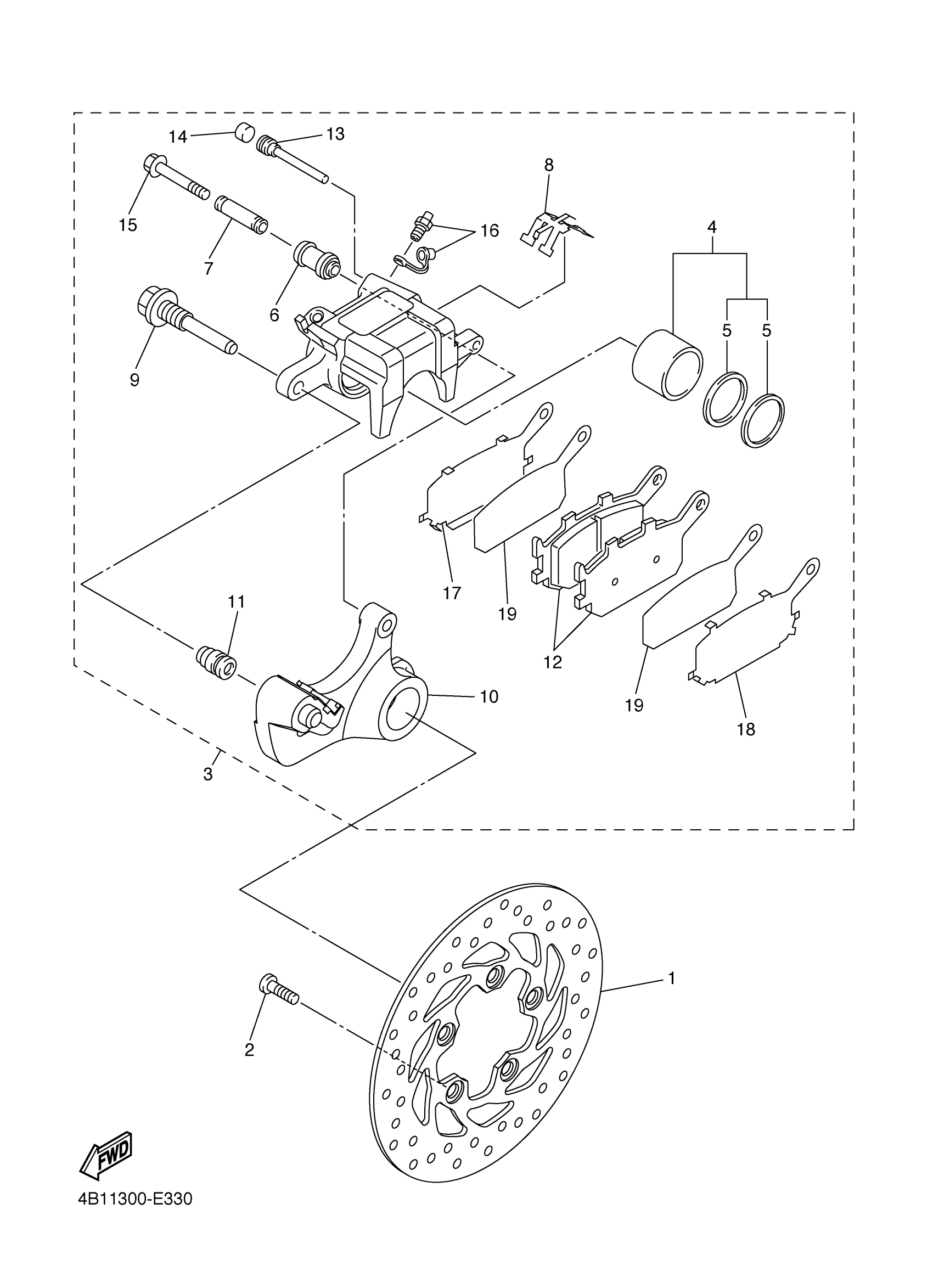 Yamaha YZFR1LEVC (YZFR1 Limited Edition CA) 4B15 2006 REAR BRAKE CALIPER Diagram