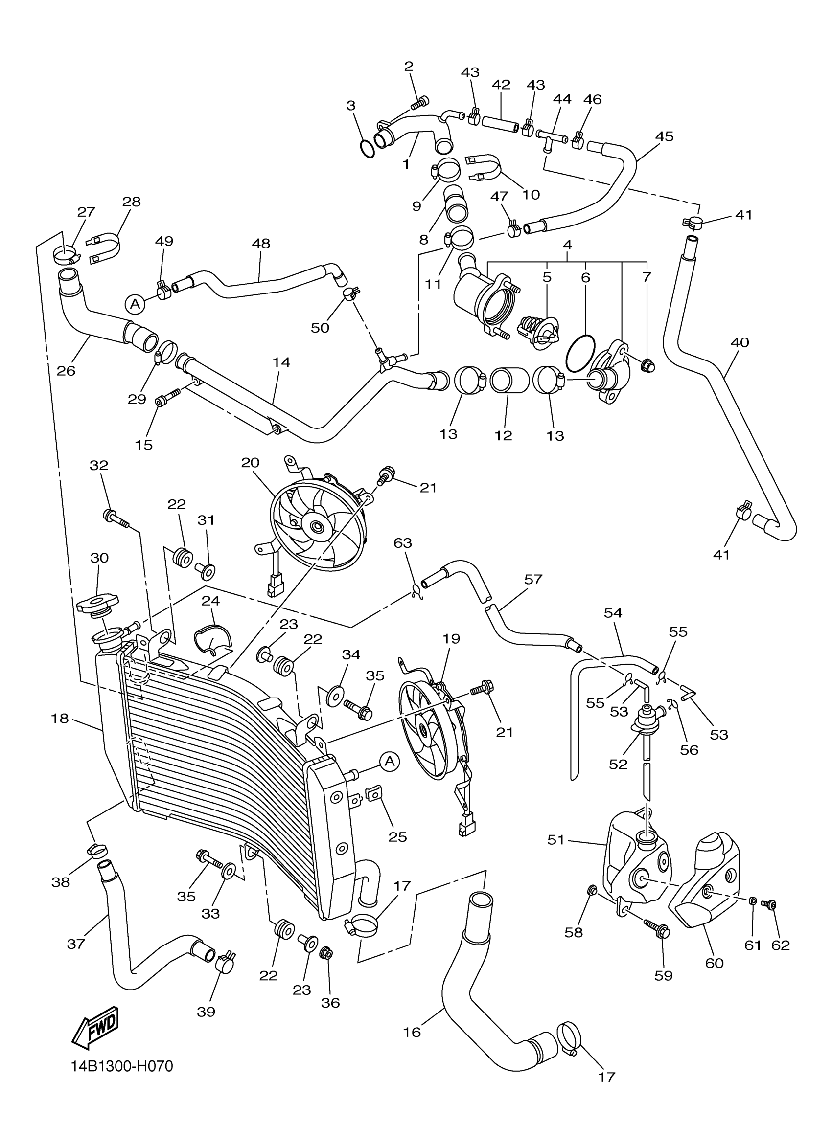 Yamaha YZFR1LEZC (YZFR1 LE CA) 14BM 2010 RADIATOR HOSE Diagram