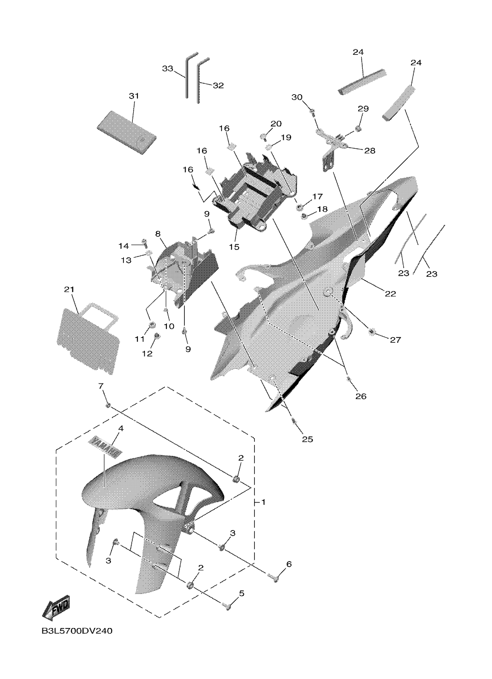 Yamaha YZFR1M1L (YZFR1) B3LB 2021 FENDER Diagram