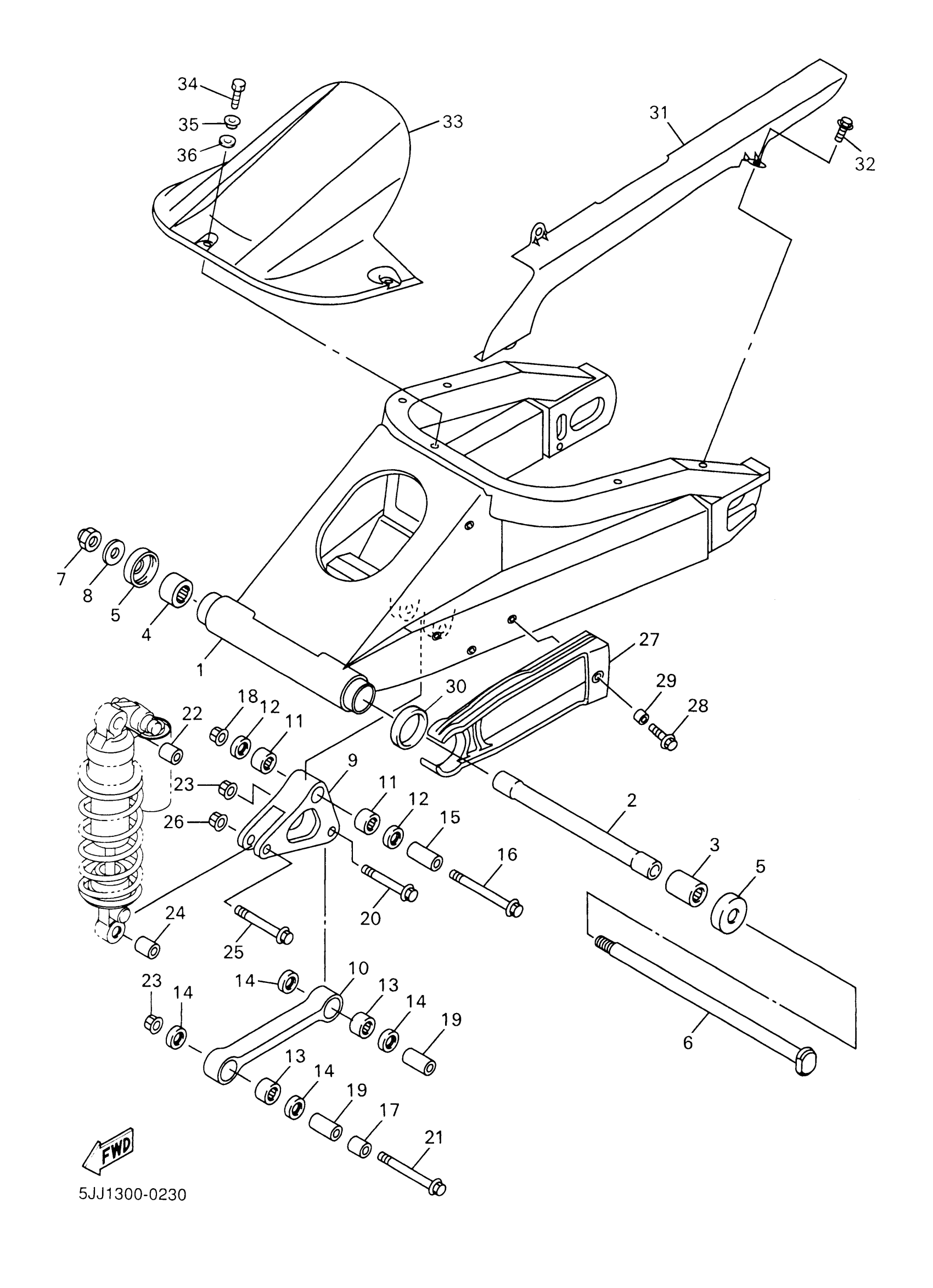 Yamaha YZFR1MC (YZFR1 CA) 5JJ5 2000 REAR ARM Diagram
