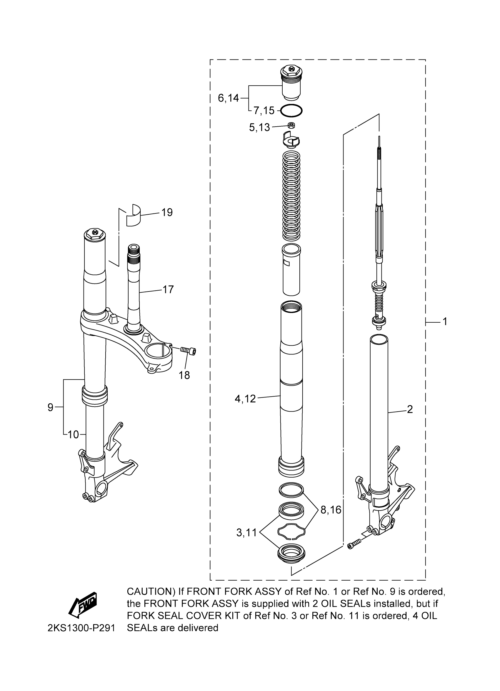Yamaha YZFR1MFC (YZFR1M CA) 2KS4 2015 FRONT FORK Diagram