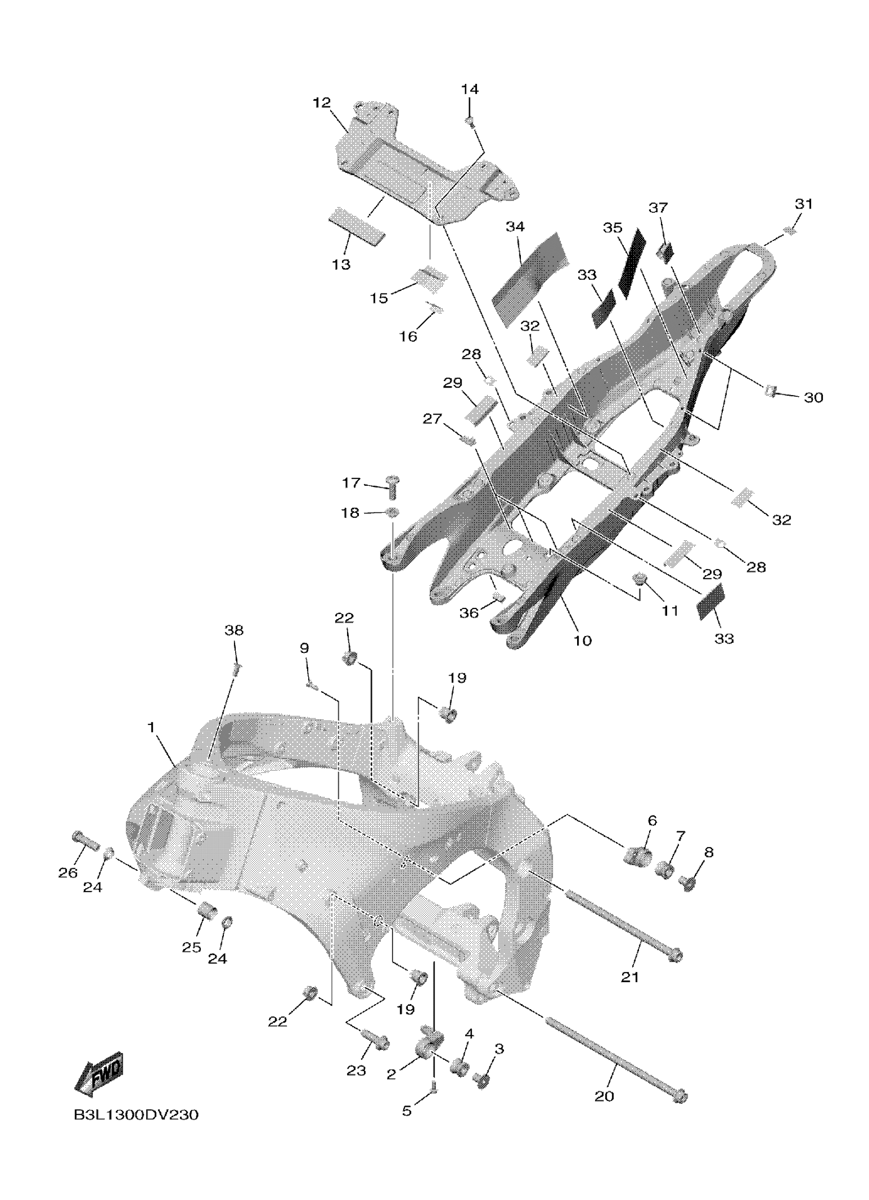 Yamaha YZFR1N1L (YZFR1) B3LH 2022 FRAME Diagram