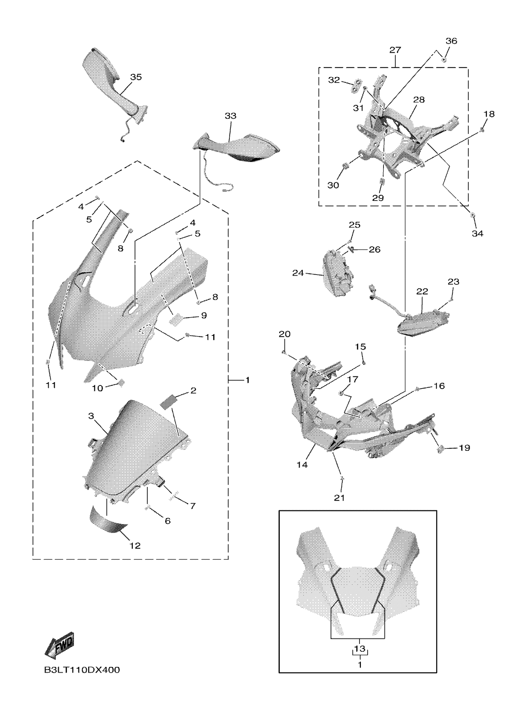 Yamaha YZFR1N1W (YZFR1 WGP 60TH) B3LT 2022 COWLING 1 Diagram