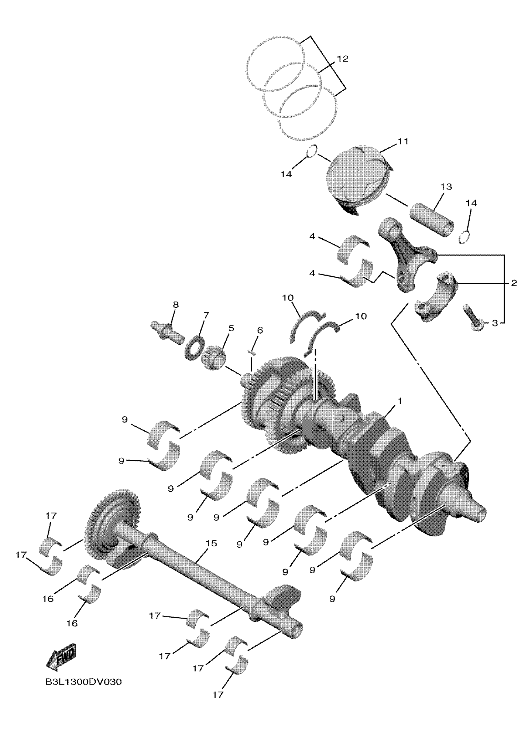 Yamaha YZFR1N1W (YZFR1 WGP 60TH) B3LT 2022 CRANKSHAFT & PISTON Diagram