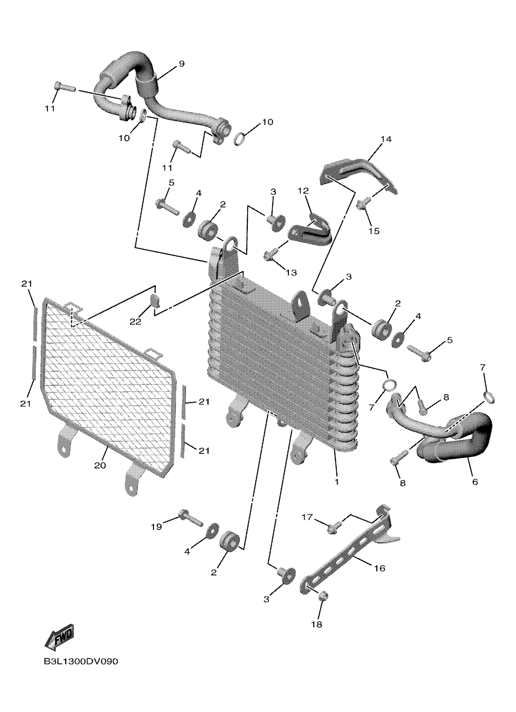 Yamaha YZFR1N1W (YZFR1 WGP 60TH) B3LT 2022 OIL COOLER Diagram