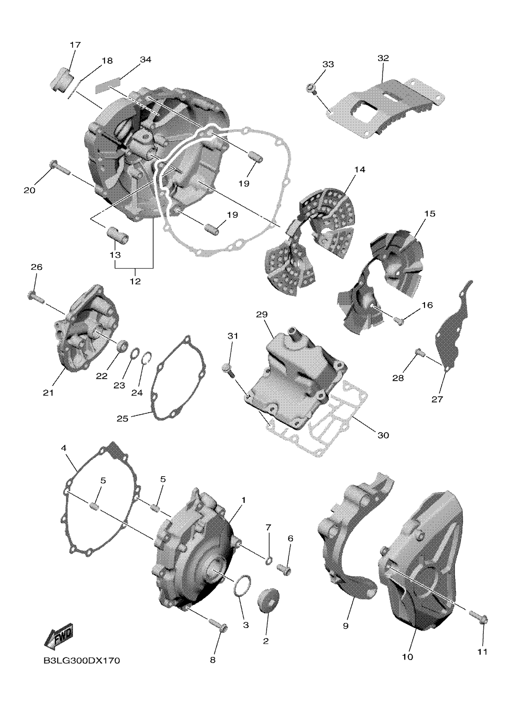 Yamaha YZFR1P1L (YZFR1) BMP2 2023 CRANKCASE COVER 1 Diagram