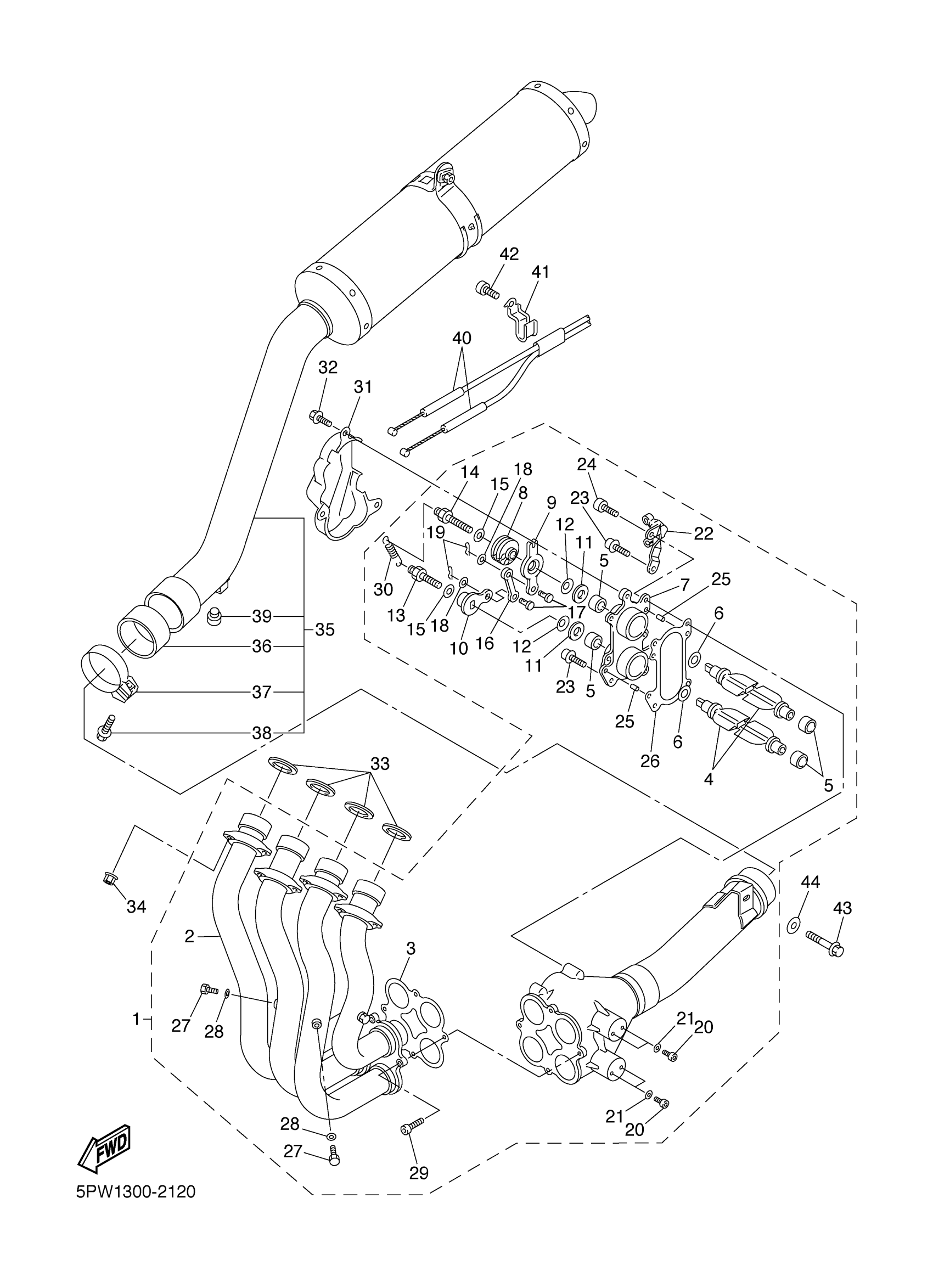 Yamaha YZFR1PC (YZFR1 CA) 5PW5 2002 EXHAUST Diagram