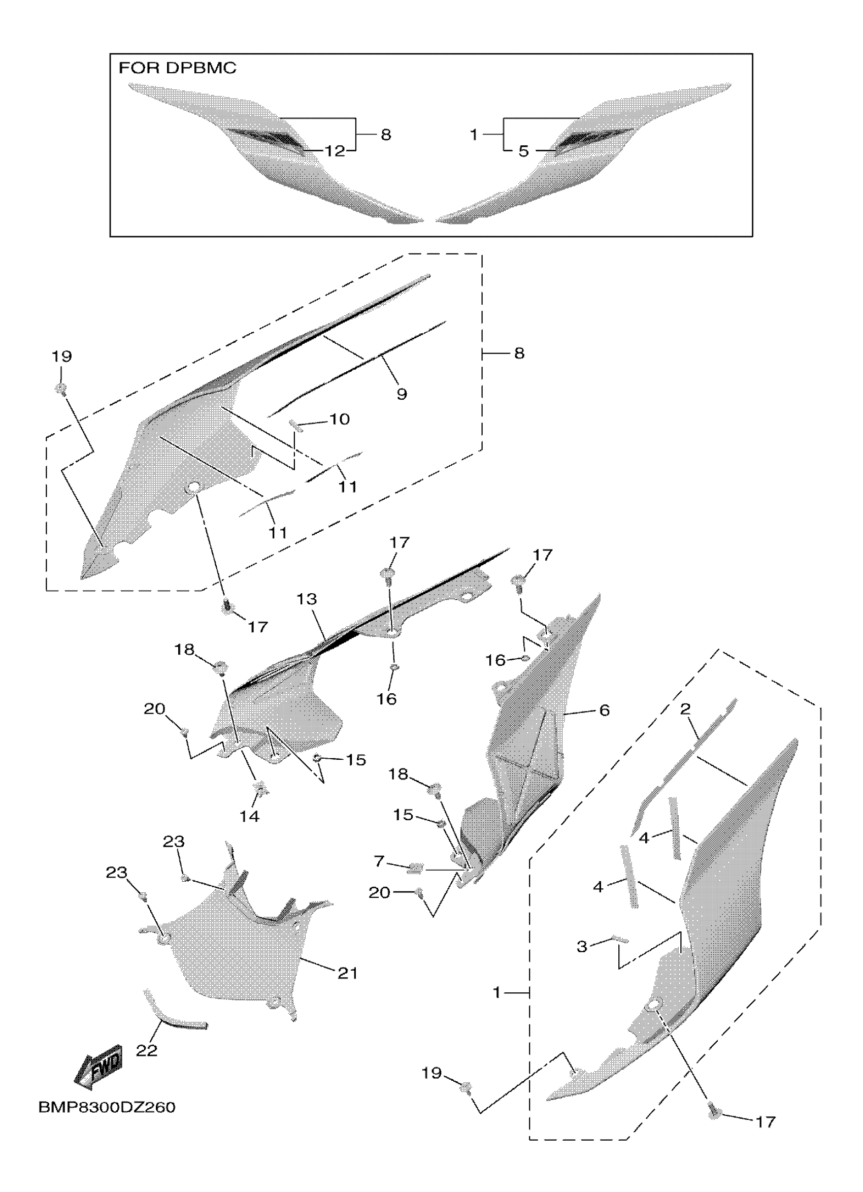 Yamaha YZFR1R1L (YZFR1) BMP9 2024 SIDE COVER Diagram