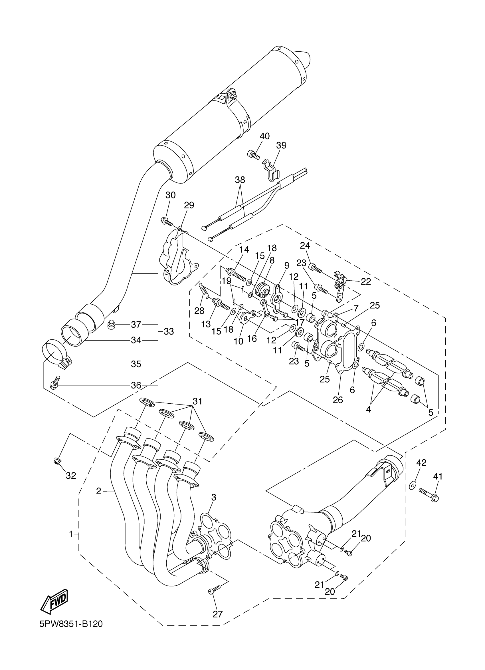 Yamaha YZFR1RC-F (YZFR1 CA) 5PWE 2003 EXHAUST Diagram