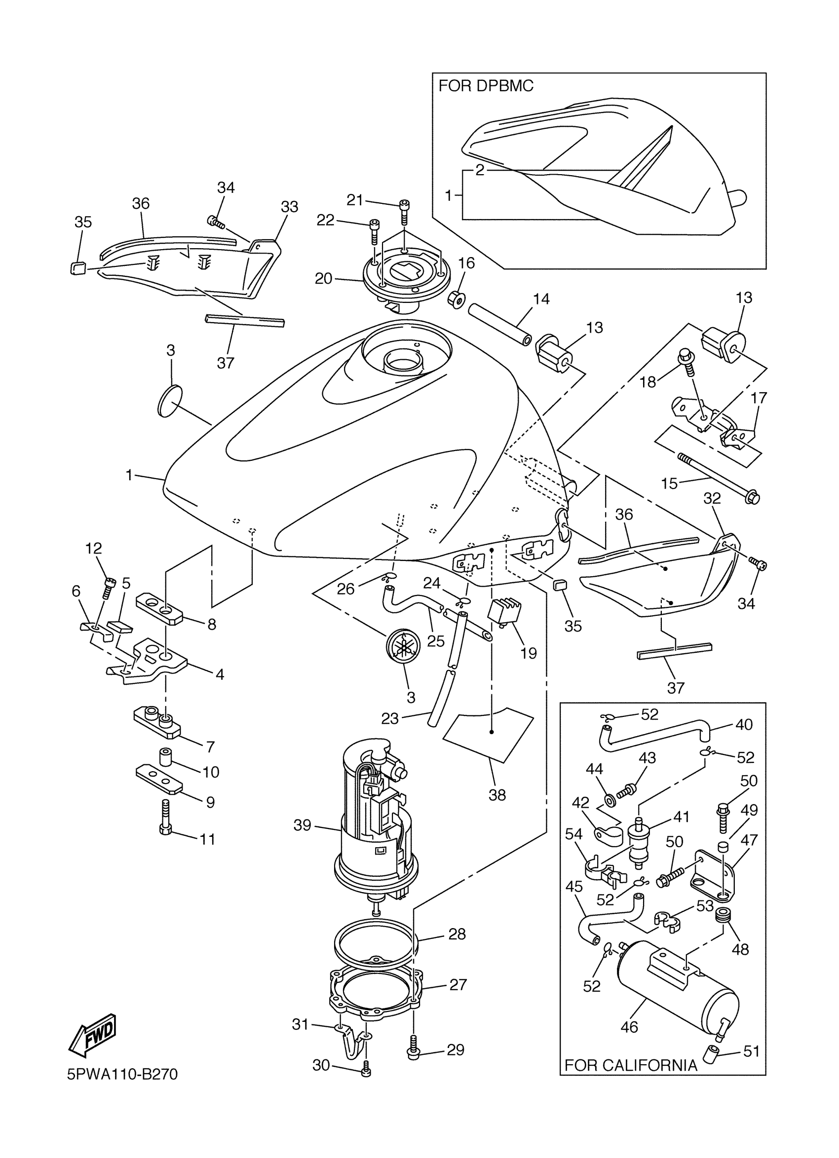 Yamaha YZFR1RC-F (YZFR1 CA) 5PWE 2003 FUEL TANK Diagram