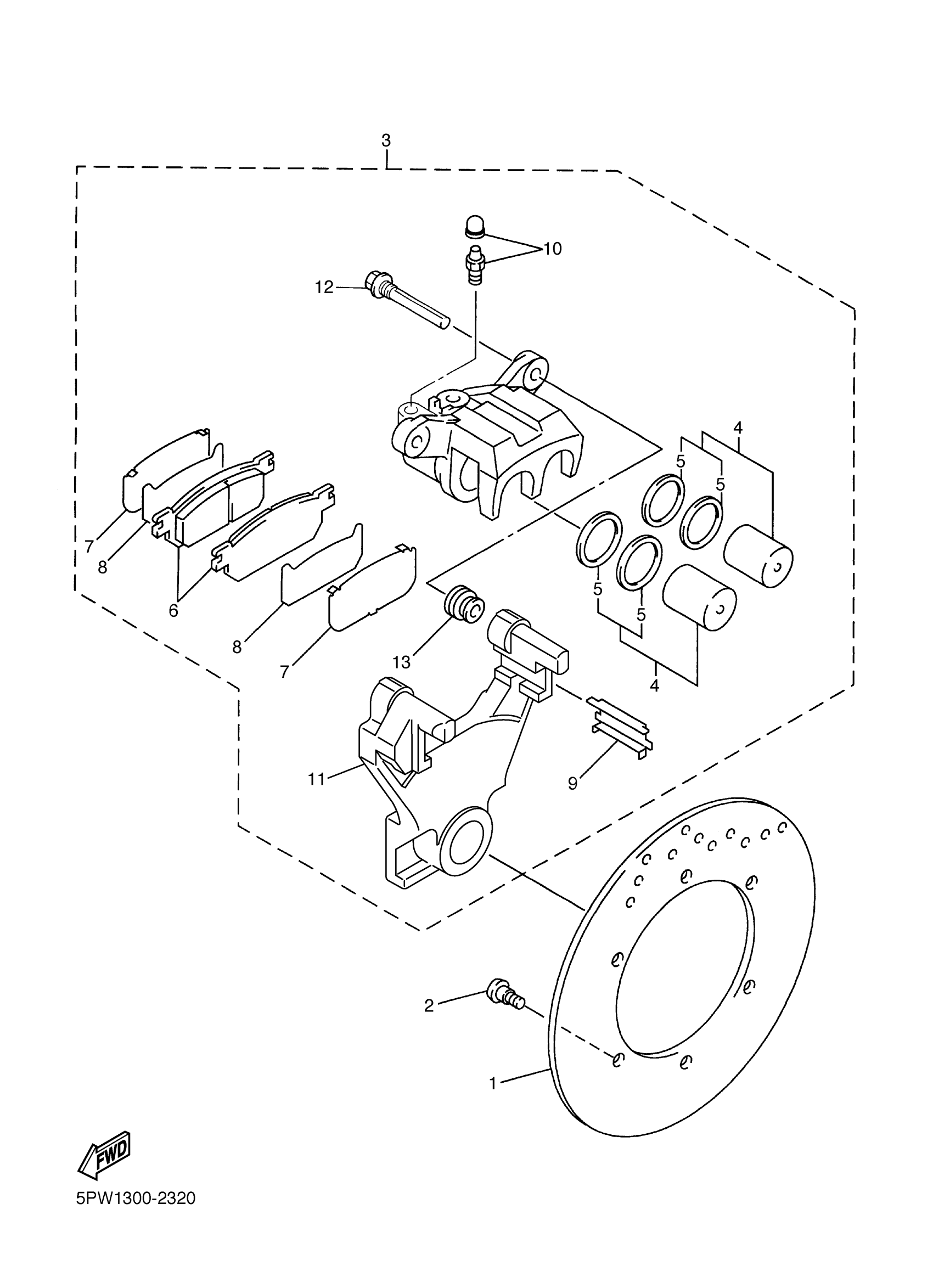 Yamaha YZFR1RC-F (YZFR1 CA) 5PWE 2003 REAR BRAKE CALIPER Diagram