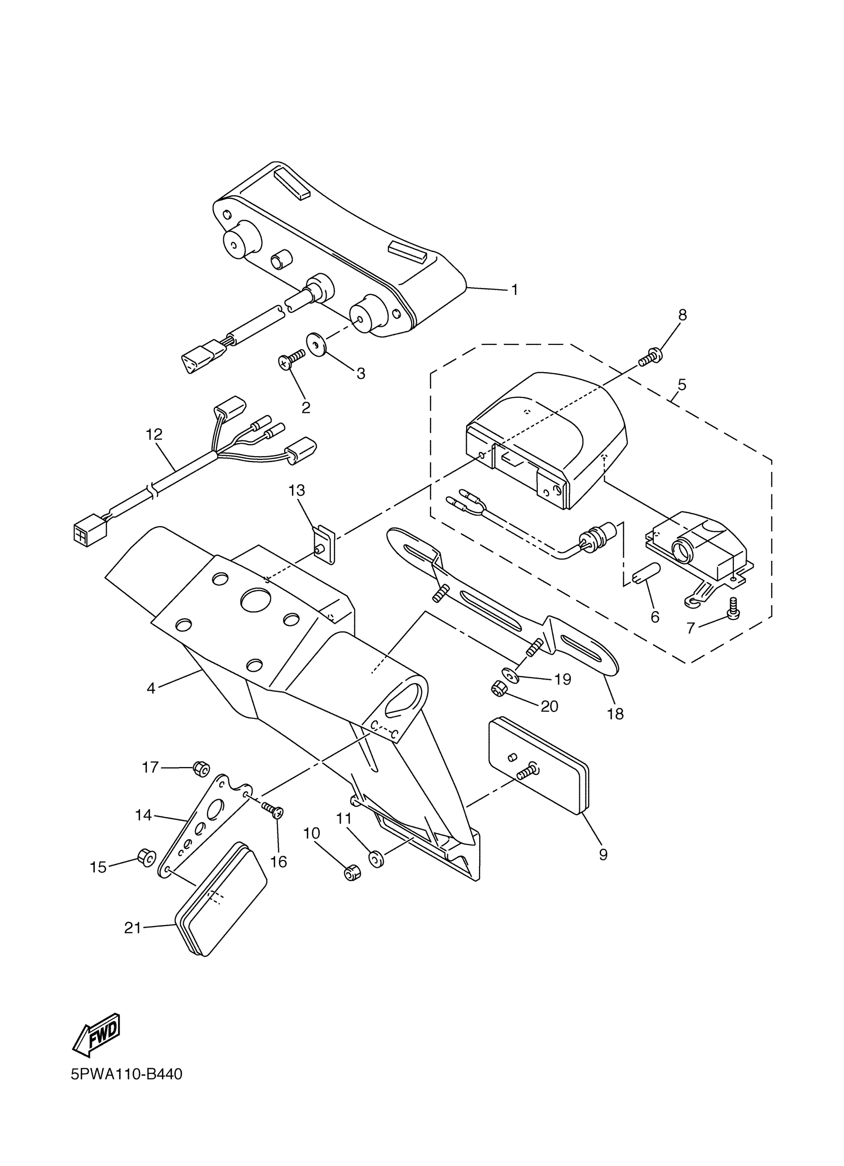 Yamaha YZFR1RC-F (YZFR1 CA) 5PWE 2003 TAILLIGHT Diagram