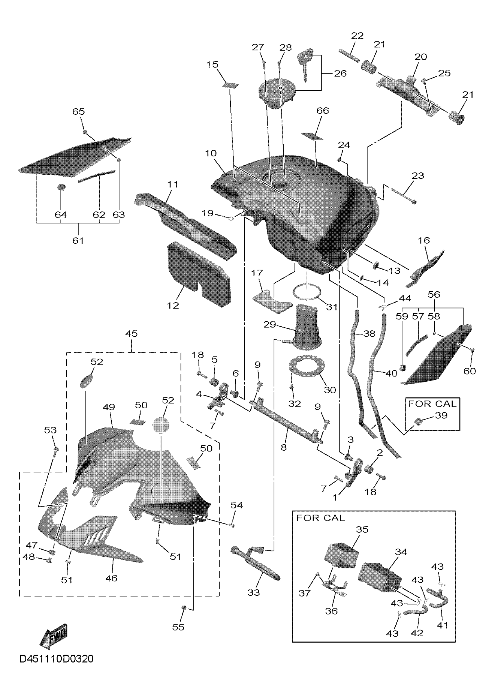 Yamaha YZFR1S1L (YZFR1) D451 2025 FUEL TANK Diagram