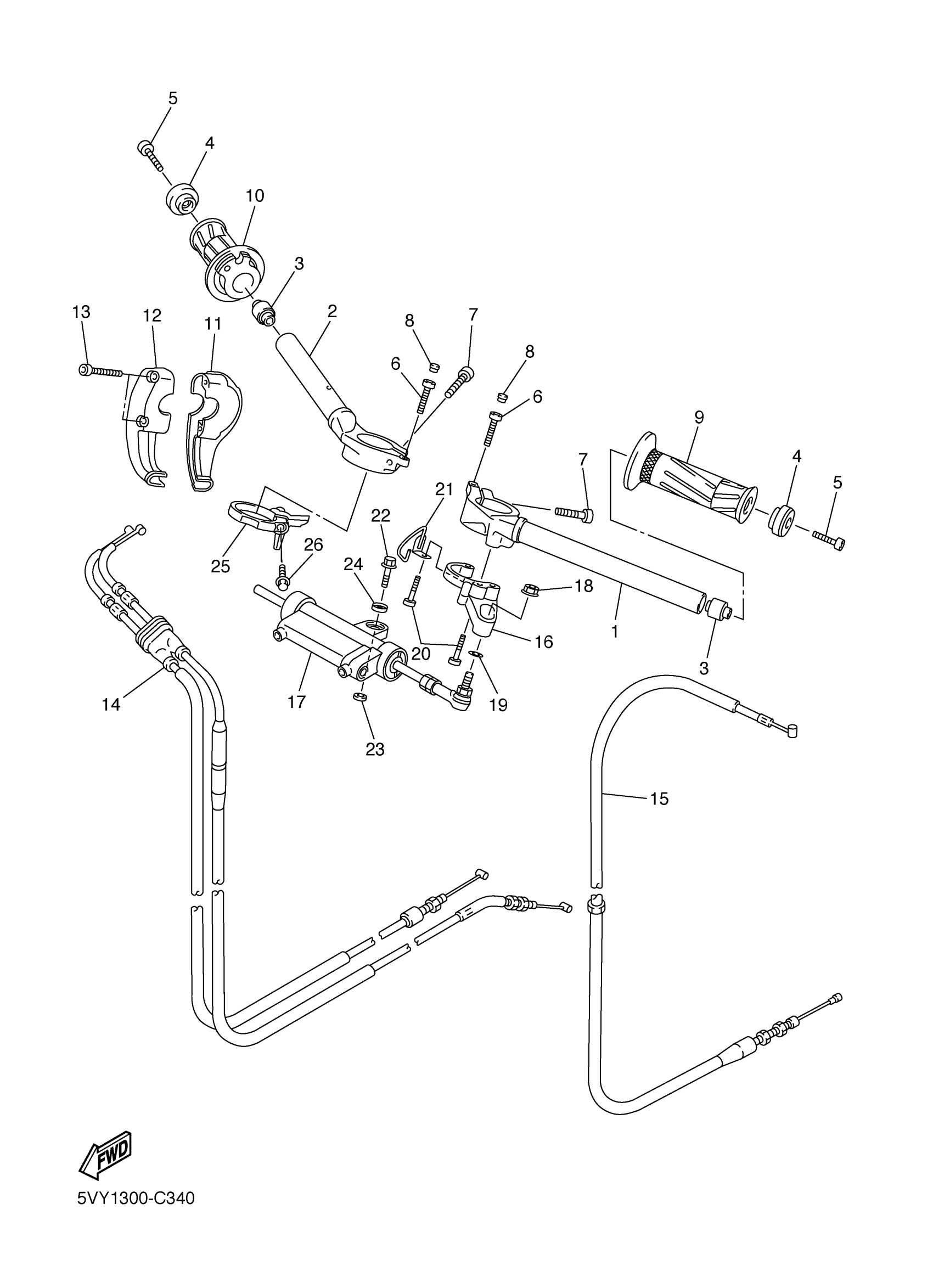 Yamaha YZFR1SC (YZFR1 CA) 5VY5 2004 STEERING HANDLE CABLE Diagram
