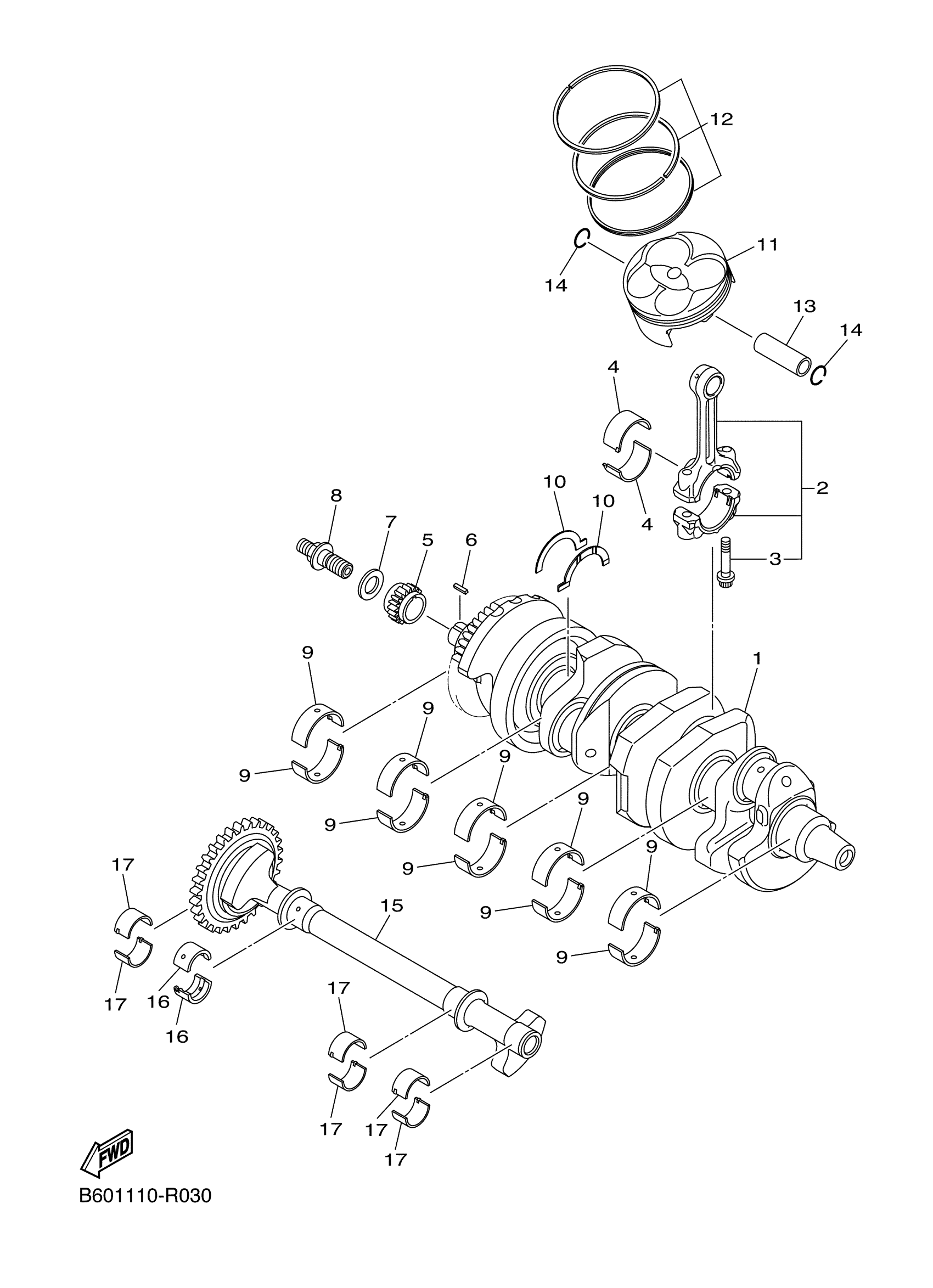 Yamaha YZFR1SJGY (YZFR1S) B607 2018 CRANKSHAFT PISTON Diagram