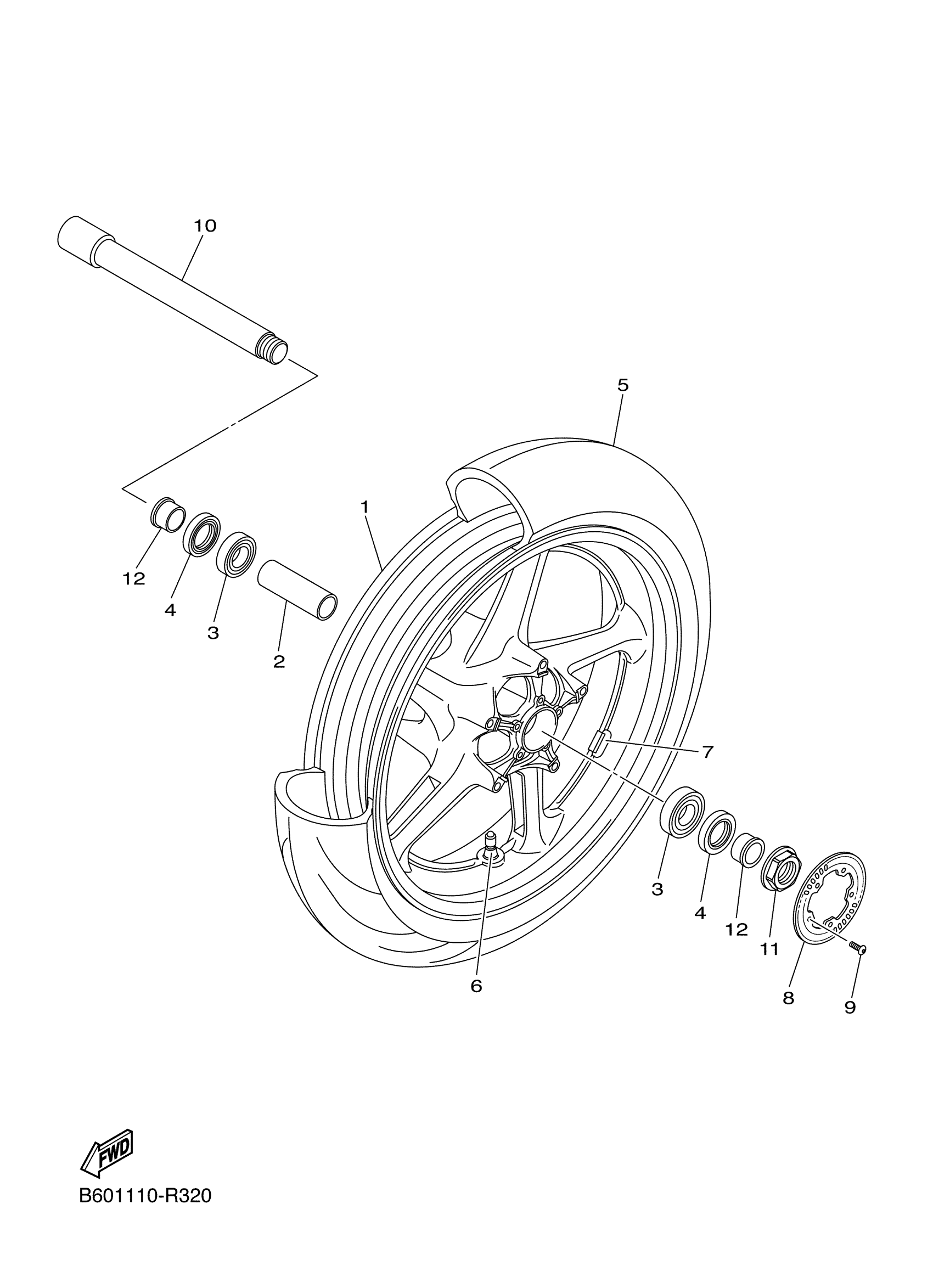 Yamaha YZFR1SJGY (YZFR1S) B607 2018 FRONT WHEEL Diagram