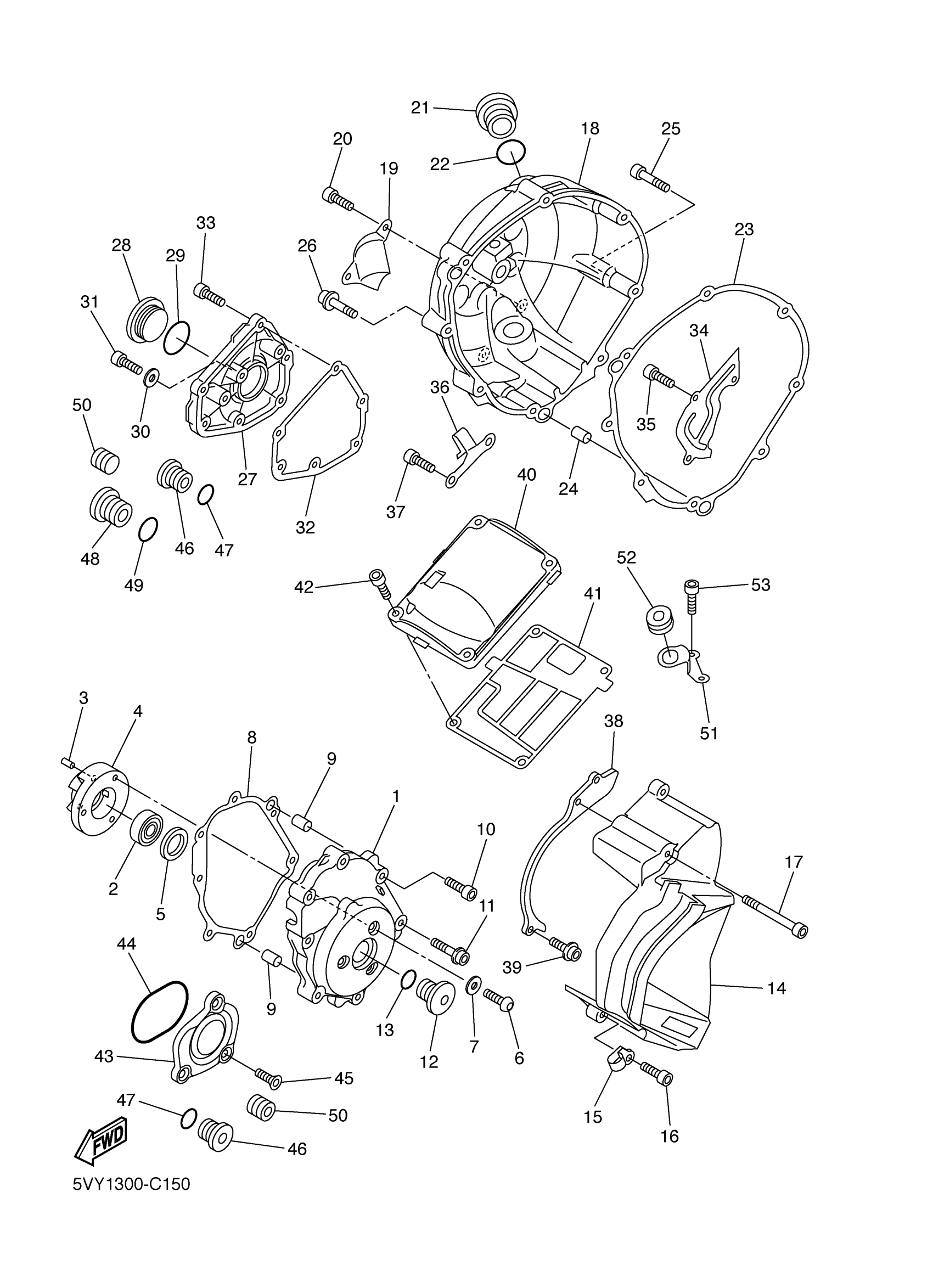 Yamaha YZFR1TC (YZFR1 CA) 5VYB 2005 CRANKCASE COVER 1 Diagram