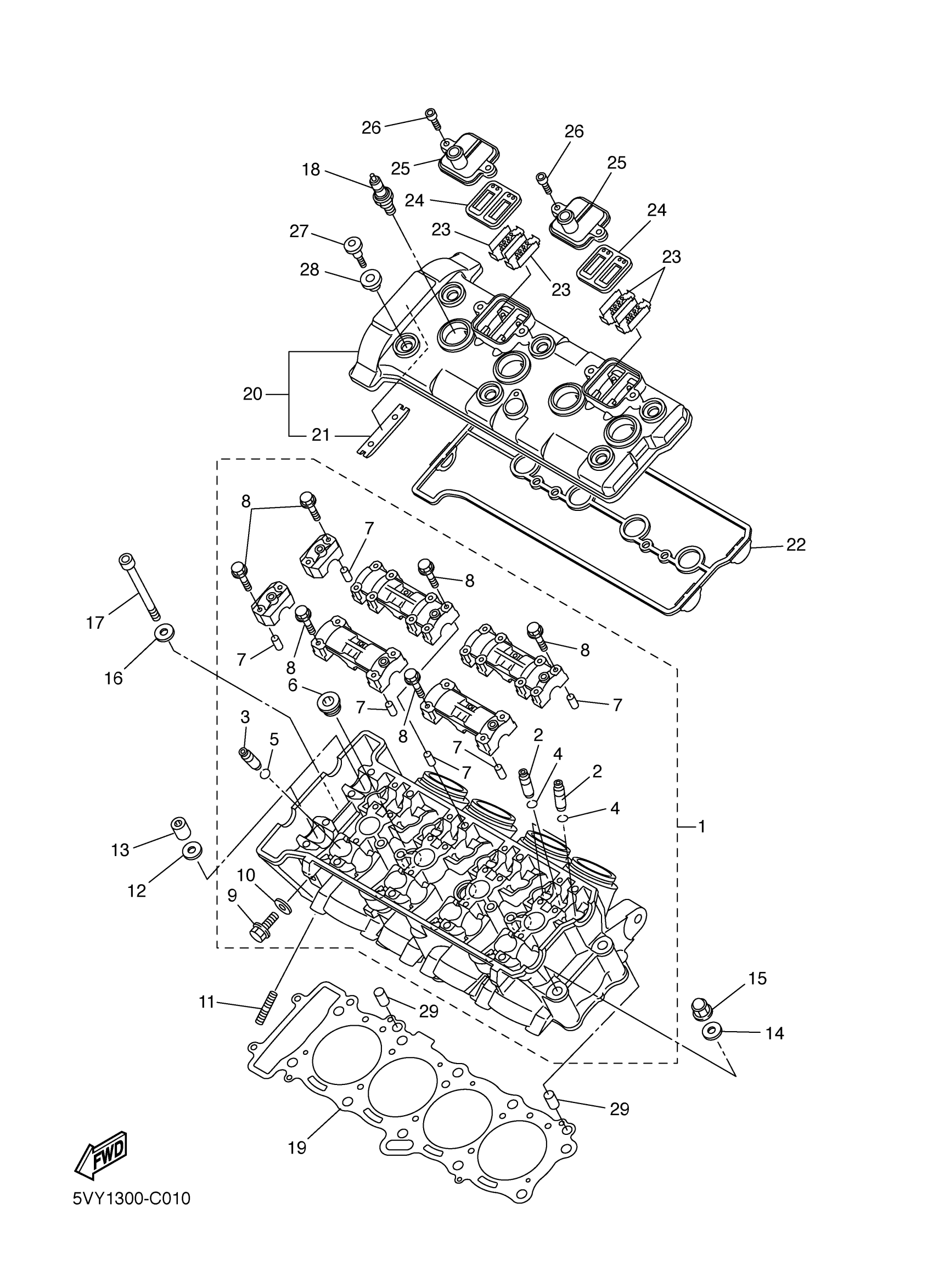 Yamaha YZFR1TC (YZFR1 CA) 5VYB 2005 CYLINDER HEAD Diagram
