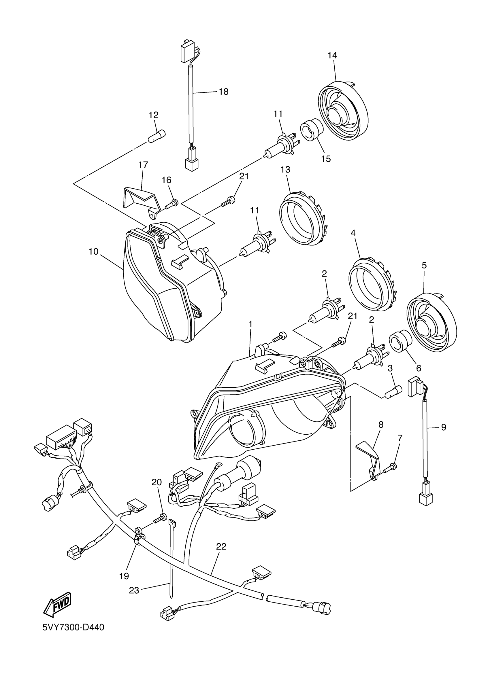 Yamaha YZFR1TC (YZFR1 CA) 5VYB 2005 HEADLIGHT Diagram