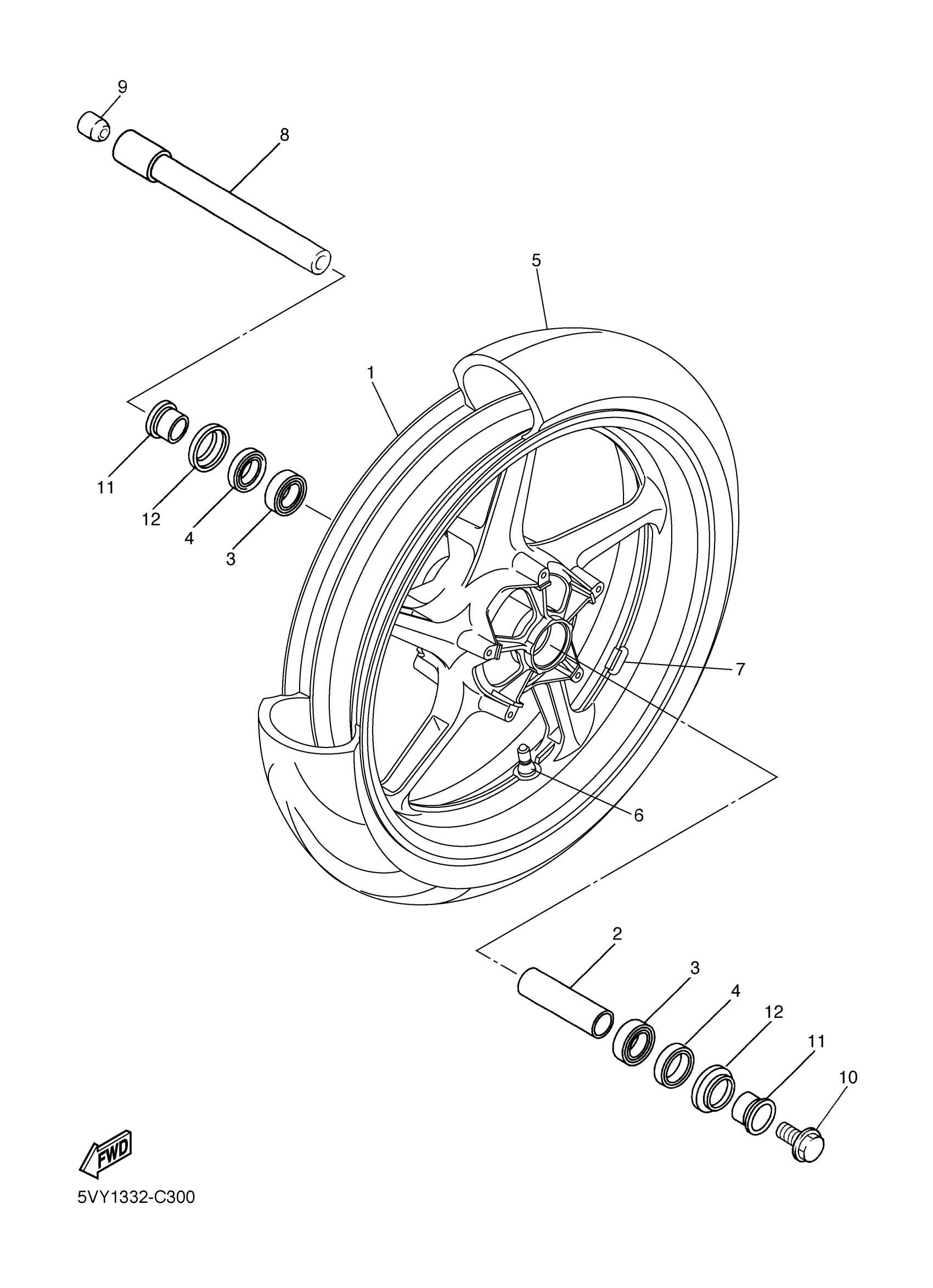 Yamaha YZFR1VC (YZFR1 CA) 5VYJ 2006 FRONT WHEEL Diagram