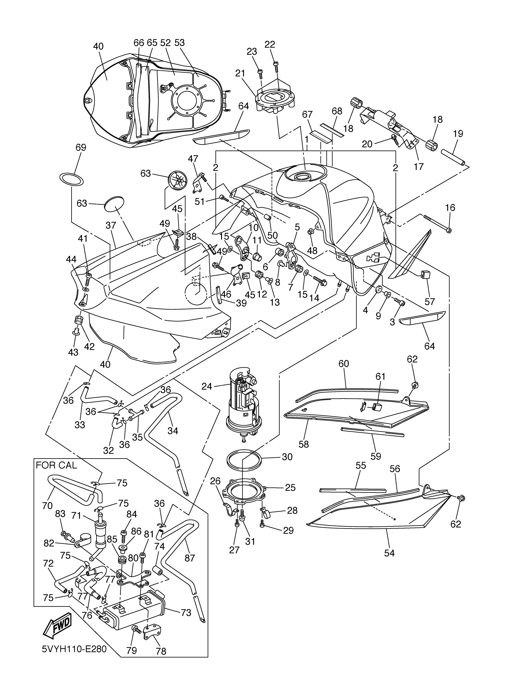 Yamaha YZFR1VC (YZFR1 CA) 5VYJ 2006 FUEL TANK Diagram