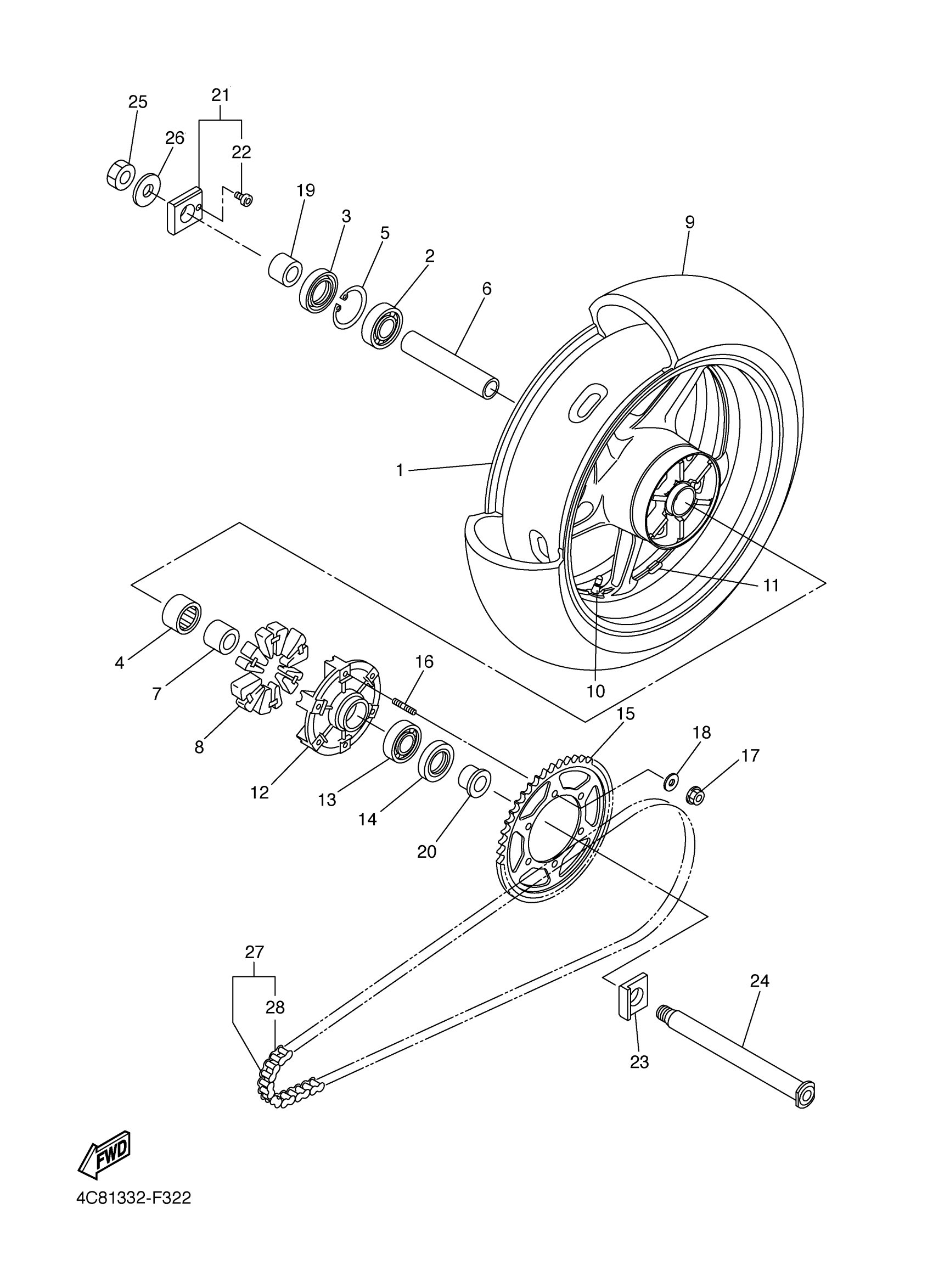 Yamaha YZFR1WC (YZFR1 CA) 4C85 2007 REAR WHEEL Diagram