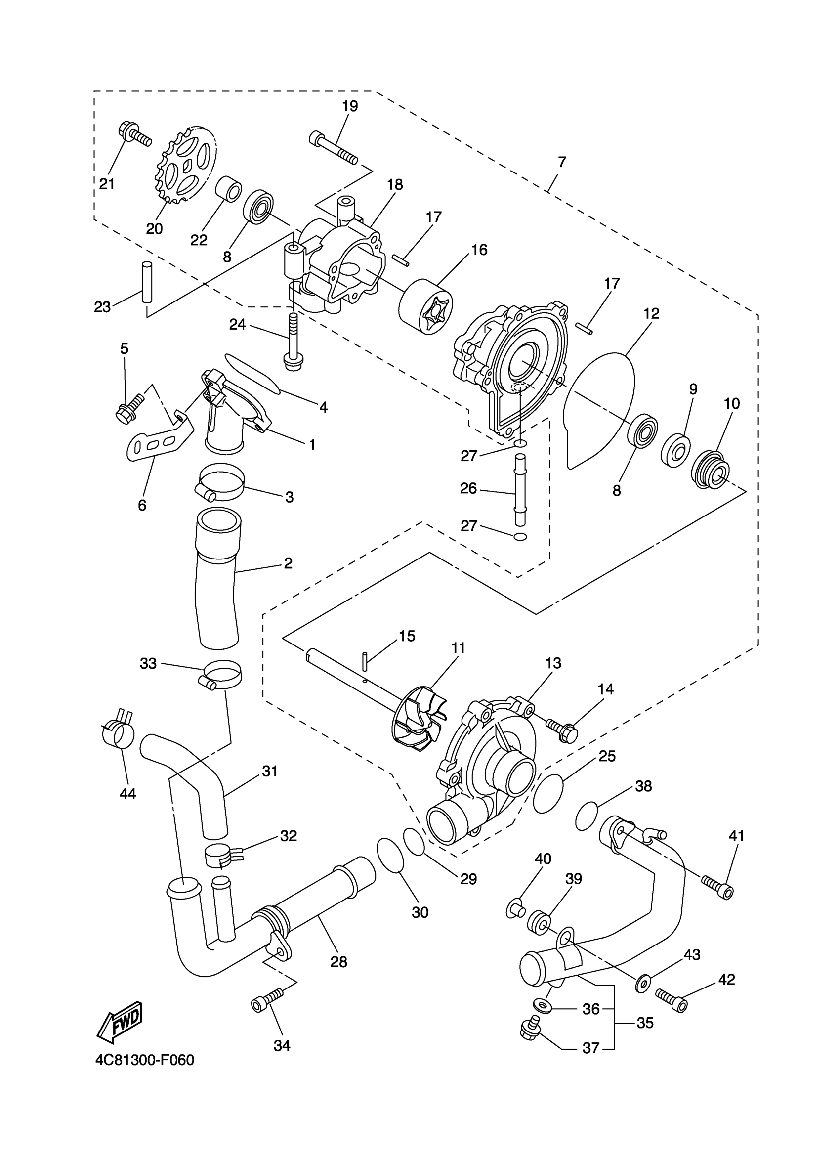 Yamaha YZFR1WC (YZFR1 CA) 4C85 2007 WATER PUMP Diagram