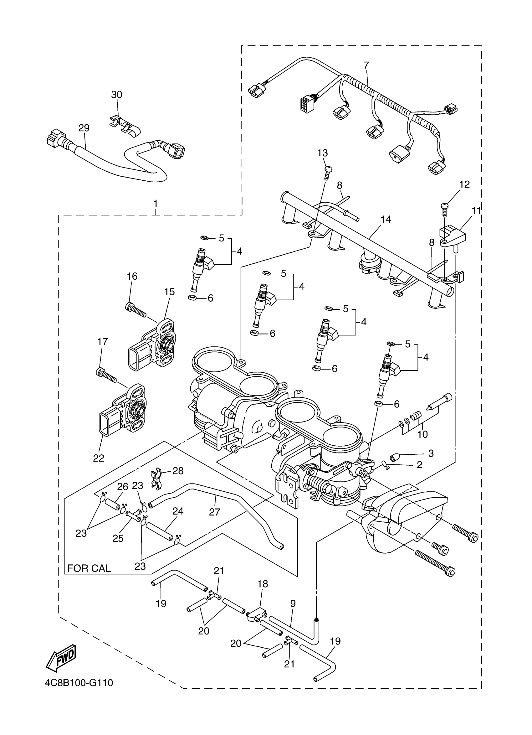 Yamaha YZFR1XR (YZFR1) 4C8B1 2008 INTAKE 2 Diagram