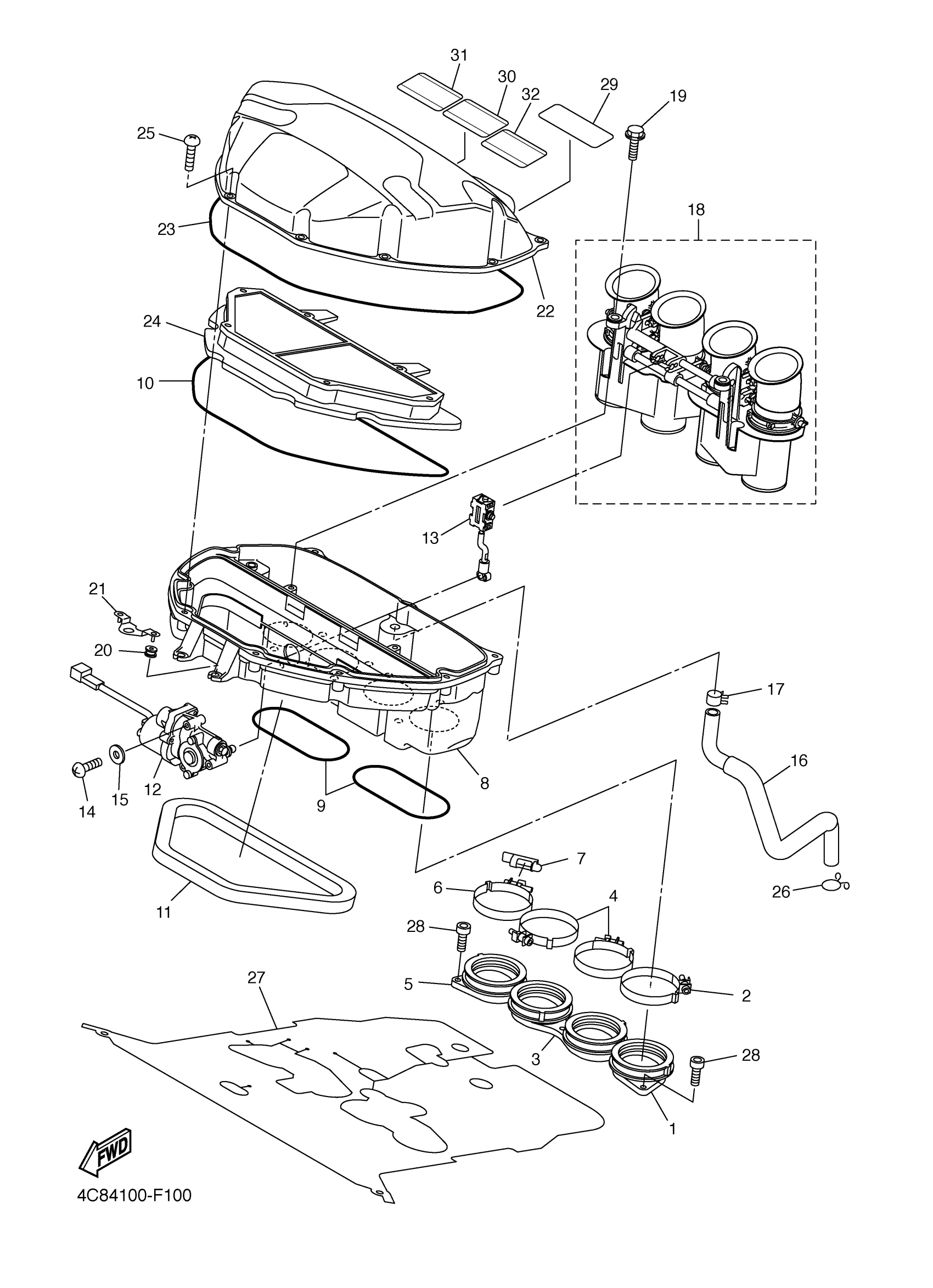 Yamaha YZFR1XR (YZFR1) 4C8B1 2008 INTAKE Diagram