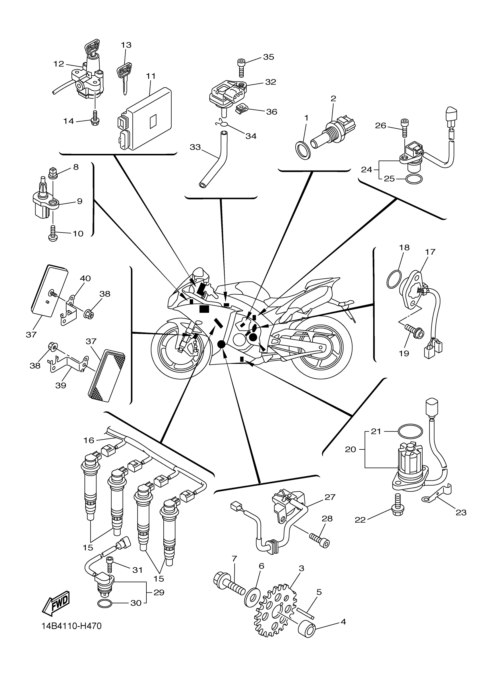 Yamaha YZFR1YL (YZFR1) 14B7 2009 ELECTRICAL 1 Diagram