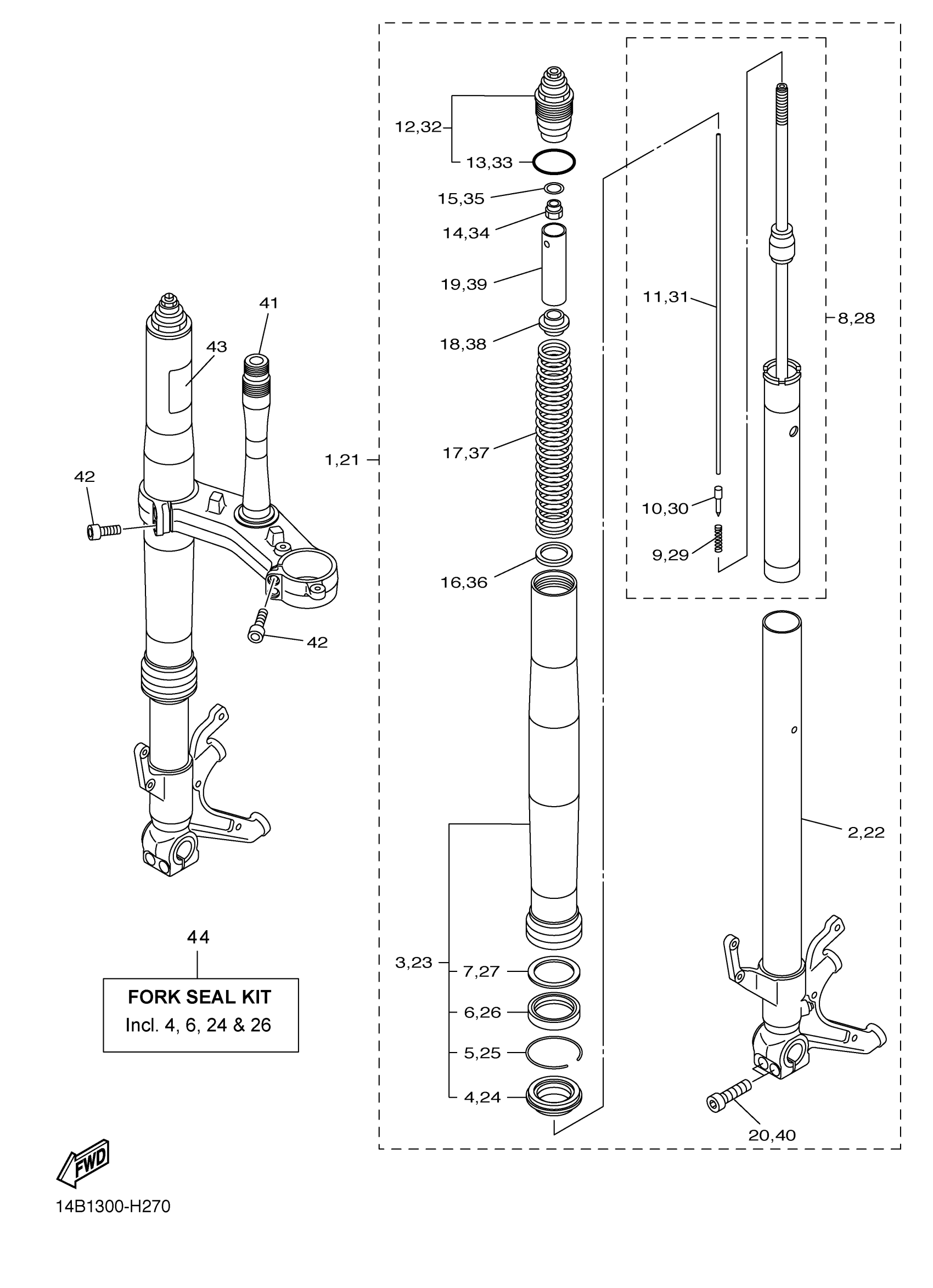 Yamaha YZFR1YL (YZFR1) 14B7 2009 FRONT FORK Diagram