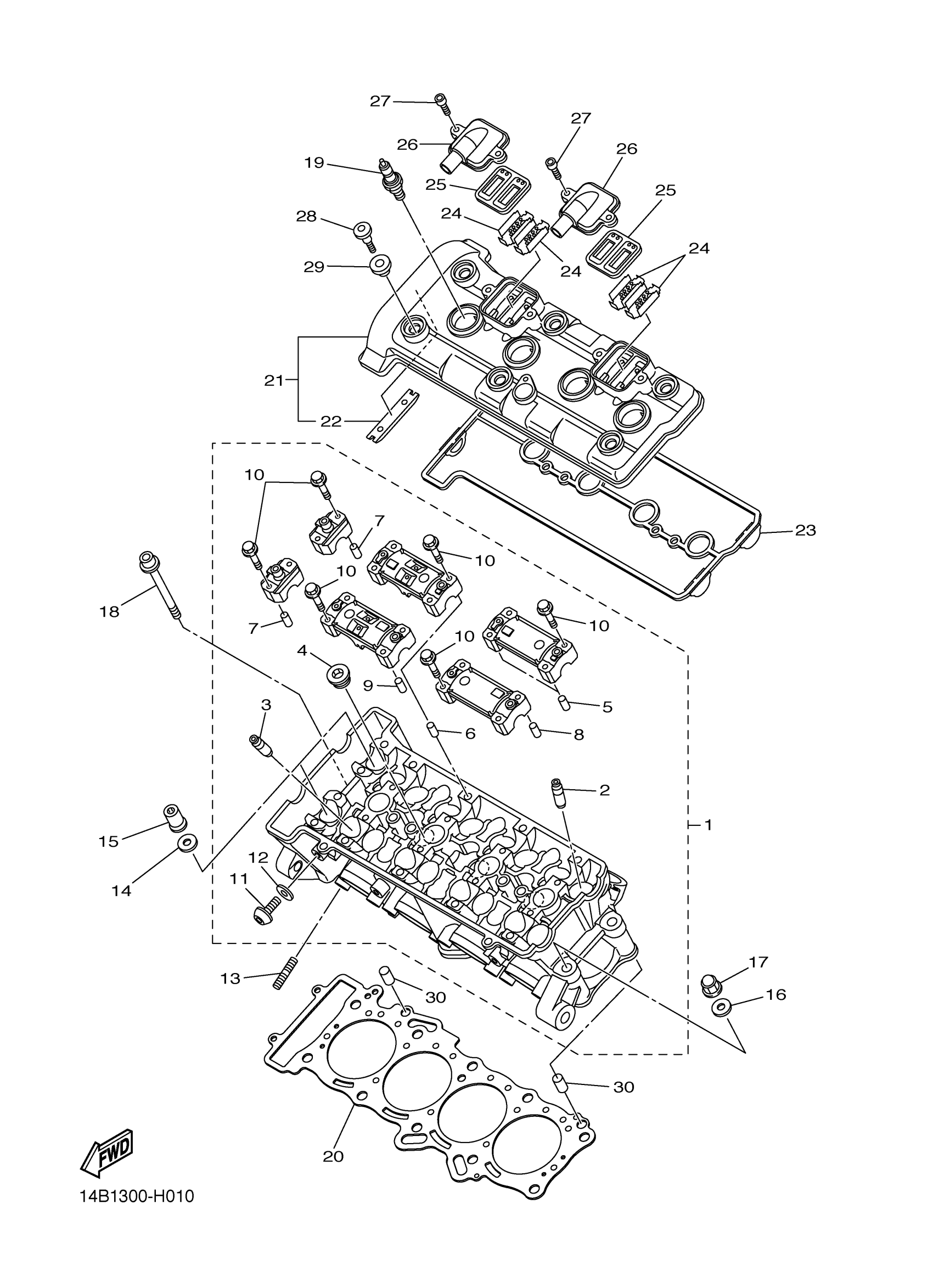 Yamaha YZFR1ZW (YZFR1) 14BF1 2010 CYLINDER HEAD Diagram