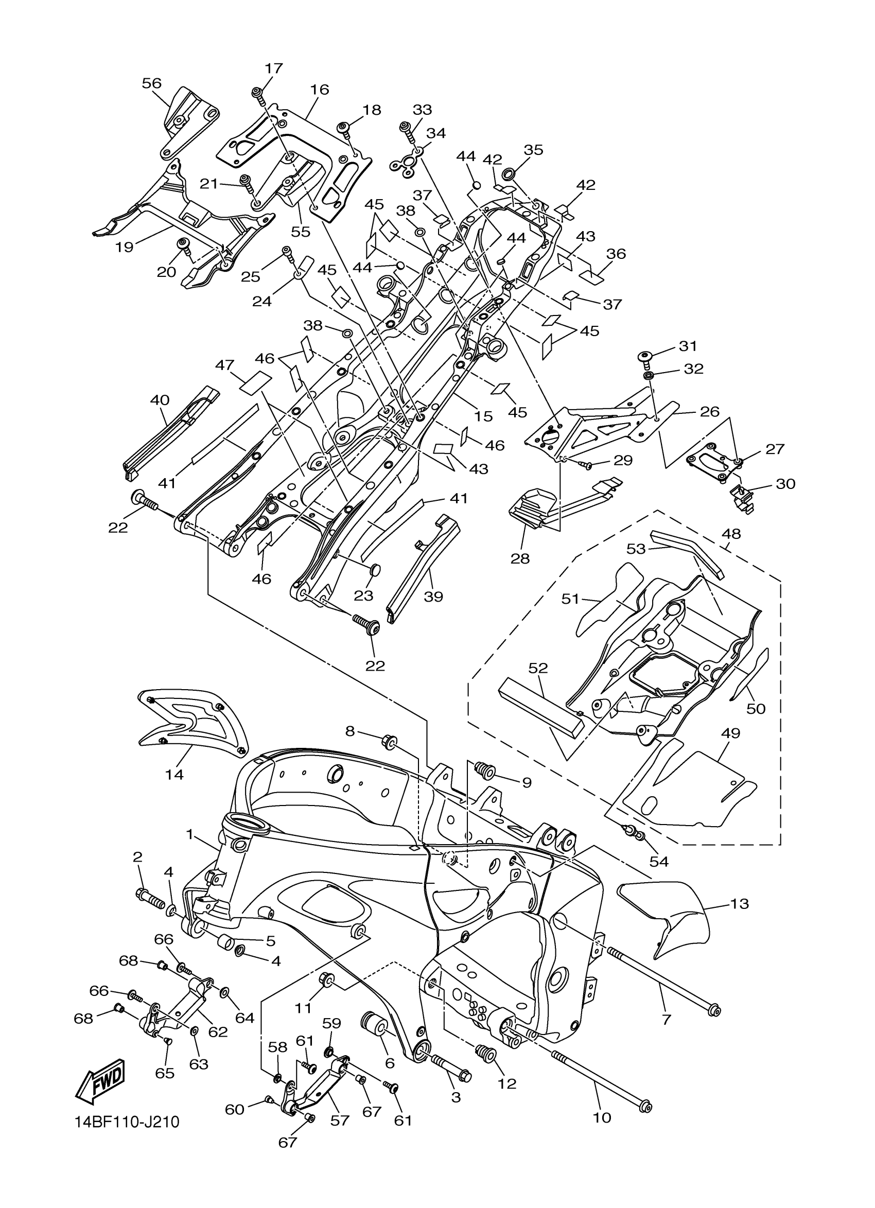 Yamaha YZFR1ZW (YZFR1) 14BF1 2010 FRAME Diagram