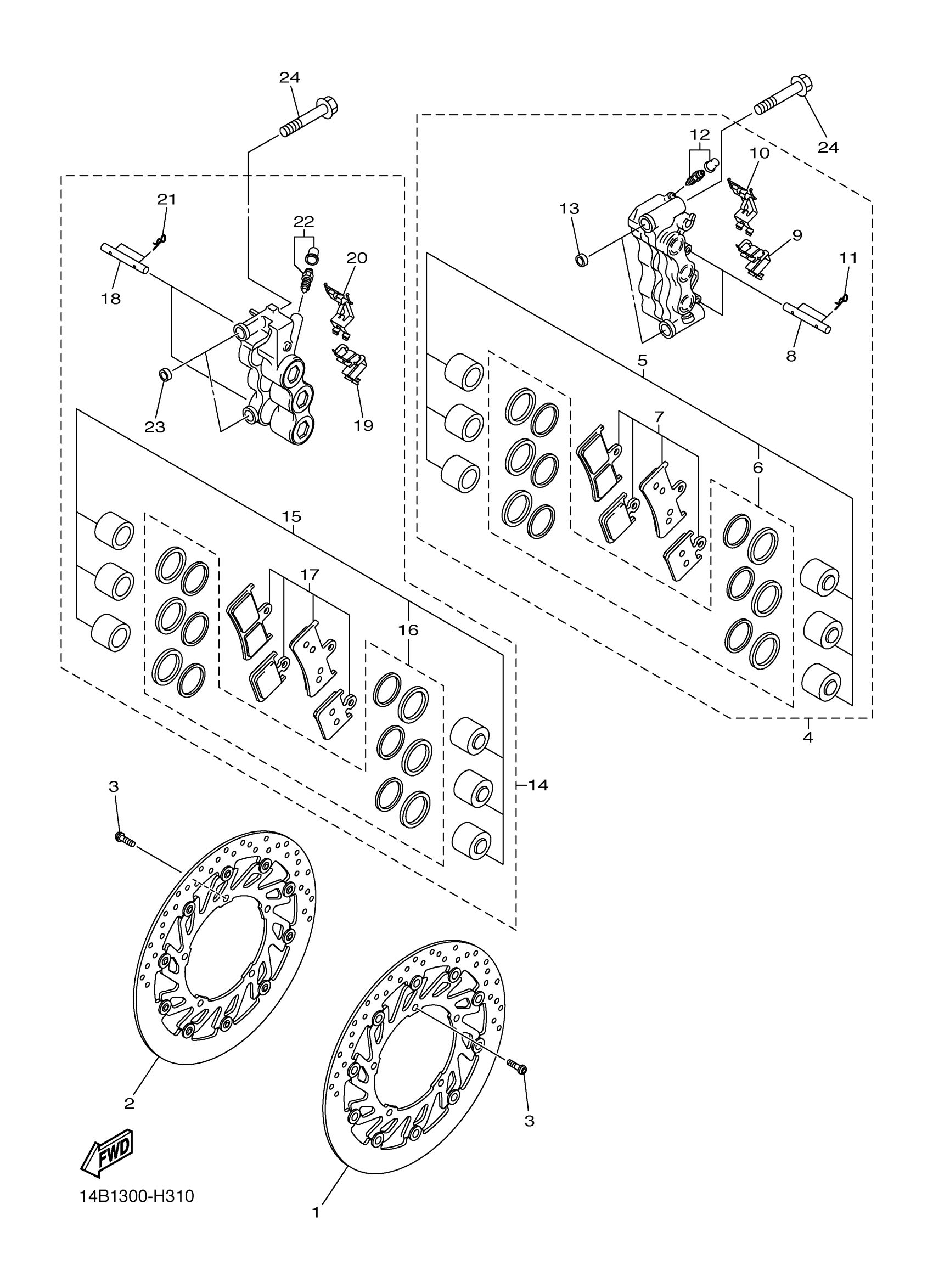 Yamaha YZFR1ZW (YZFR1) 14BF1 2010 FRONT BRAKE CALIPER Diagram