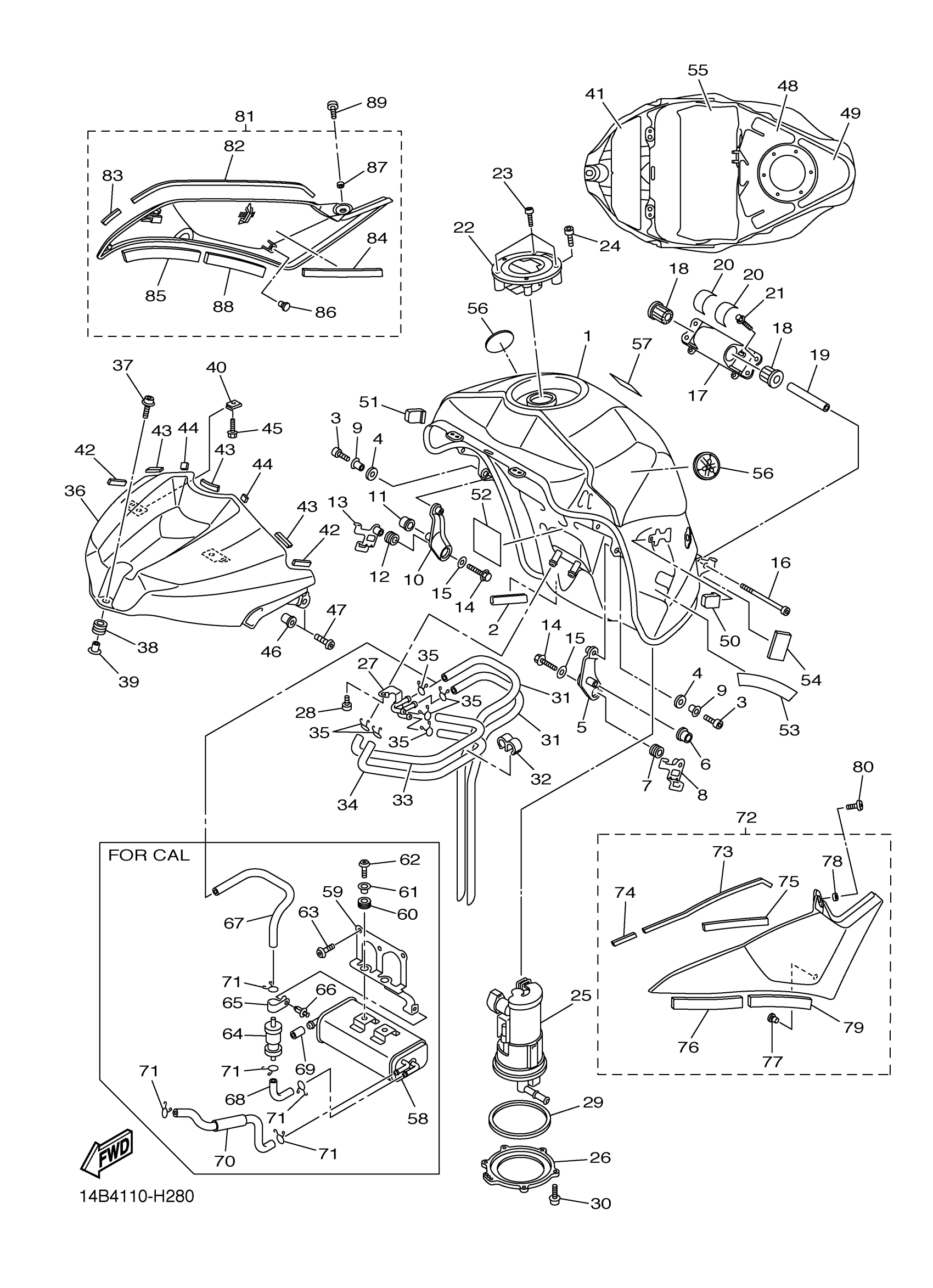 Yamaha YZFR1ZW (YZFR1) 14BF1 2010 FUEL TANK Diagram