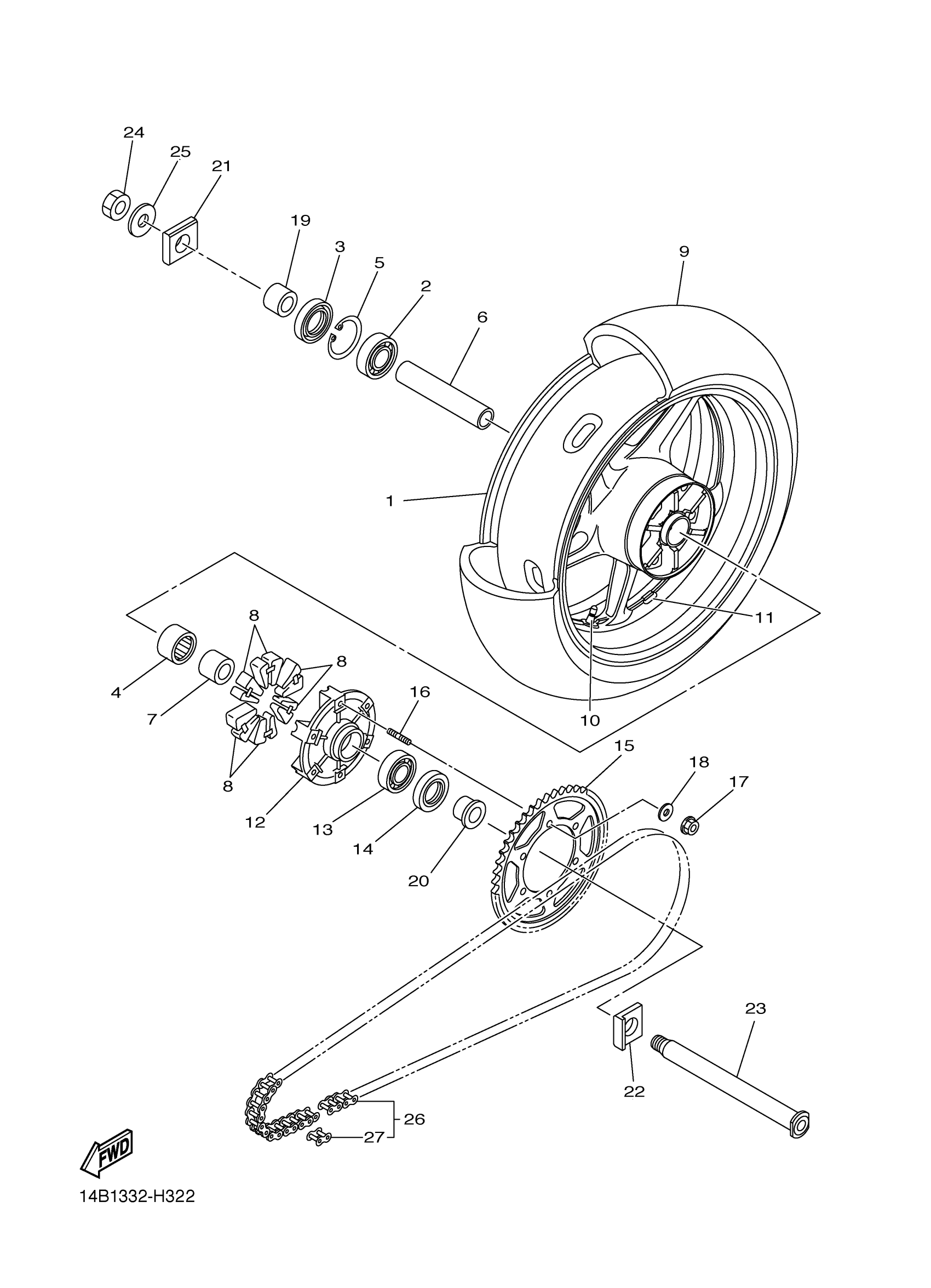 Yamaha YZFR1ZW (YZFR1) 14BF1 2010 REAR WHEEL Diagram