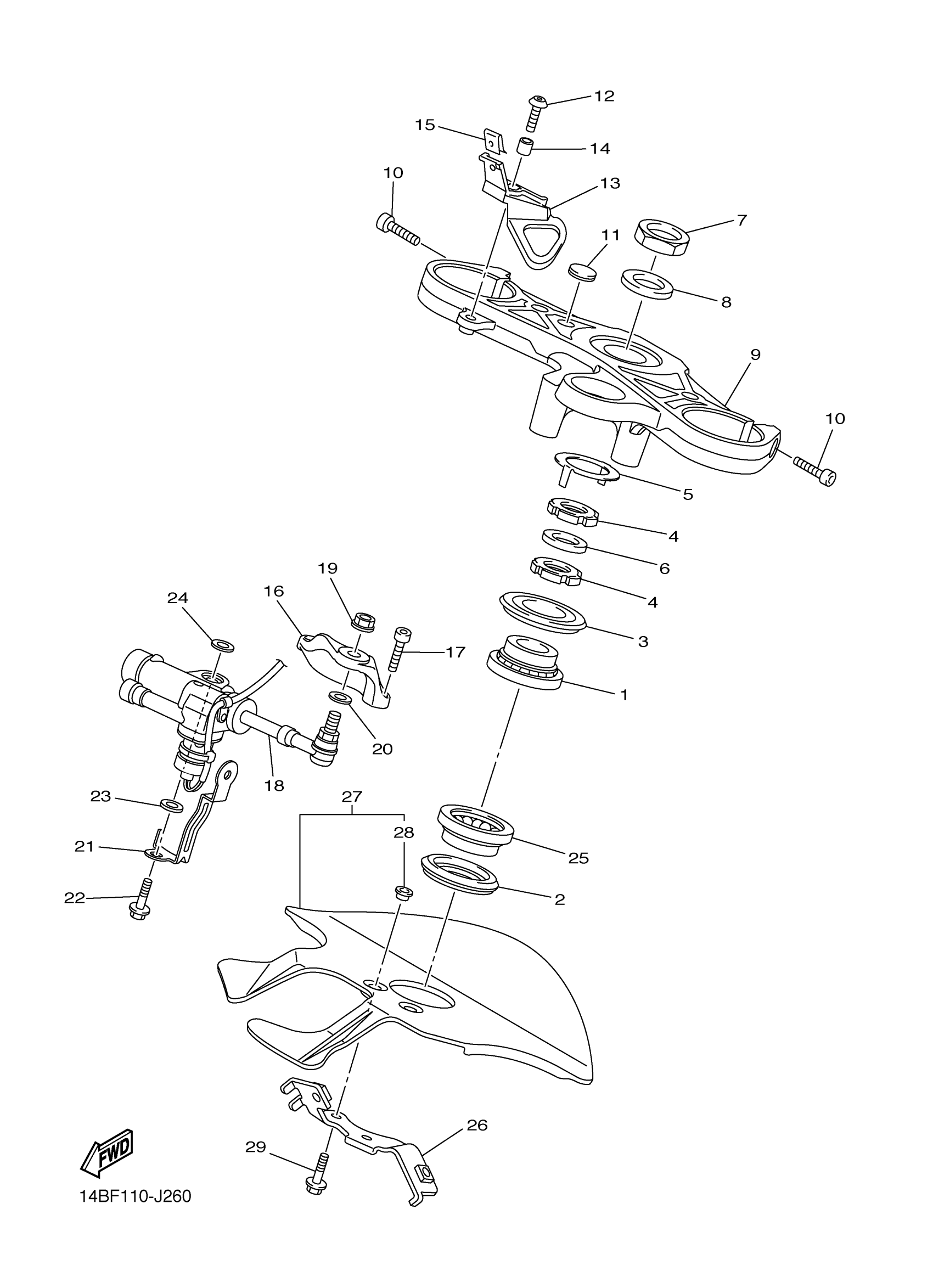 Yamaha YZFR1ZW (YZFR1) 14BF1 2010 STEERING Diagram