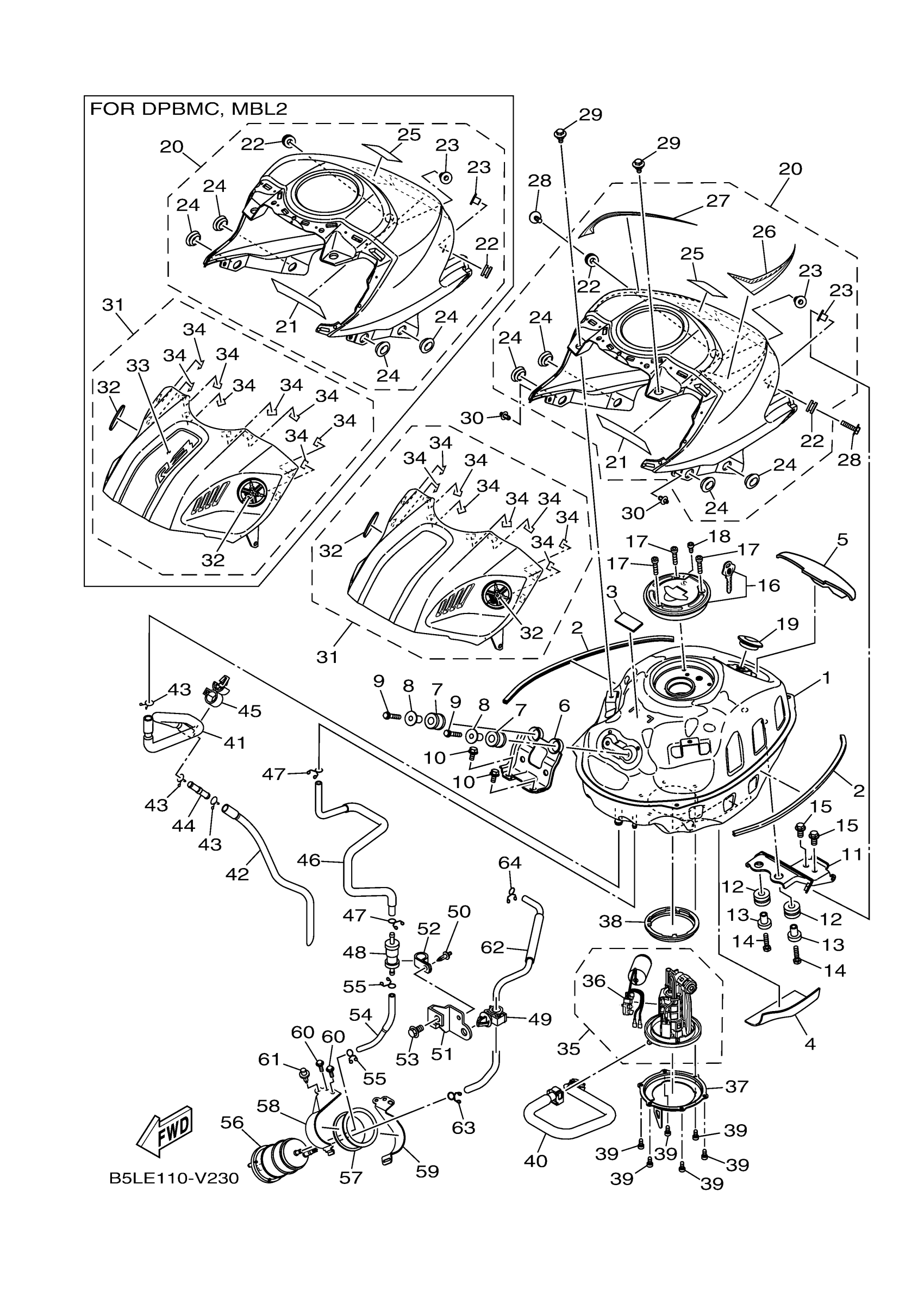 Yamaha YZFR3ALS (YZFR3 ABS) B5LE1 2020 FUEL TANK Diagram