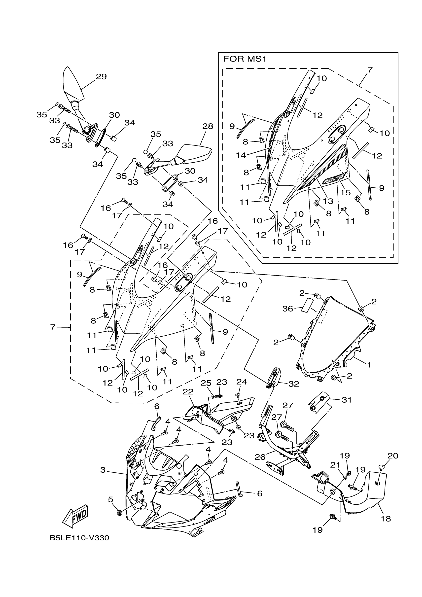 Yamaha YZFR3ALS (YZFR3 ABS) B5LE1 2020 WINDSHIELD Diagram
