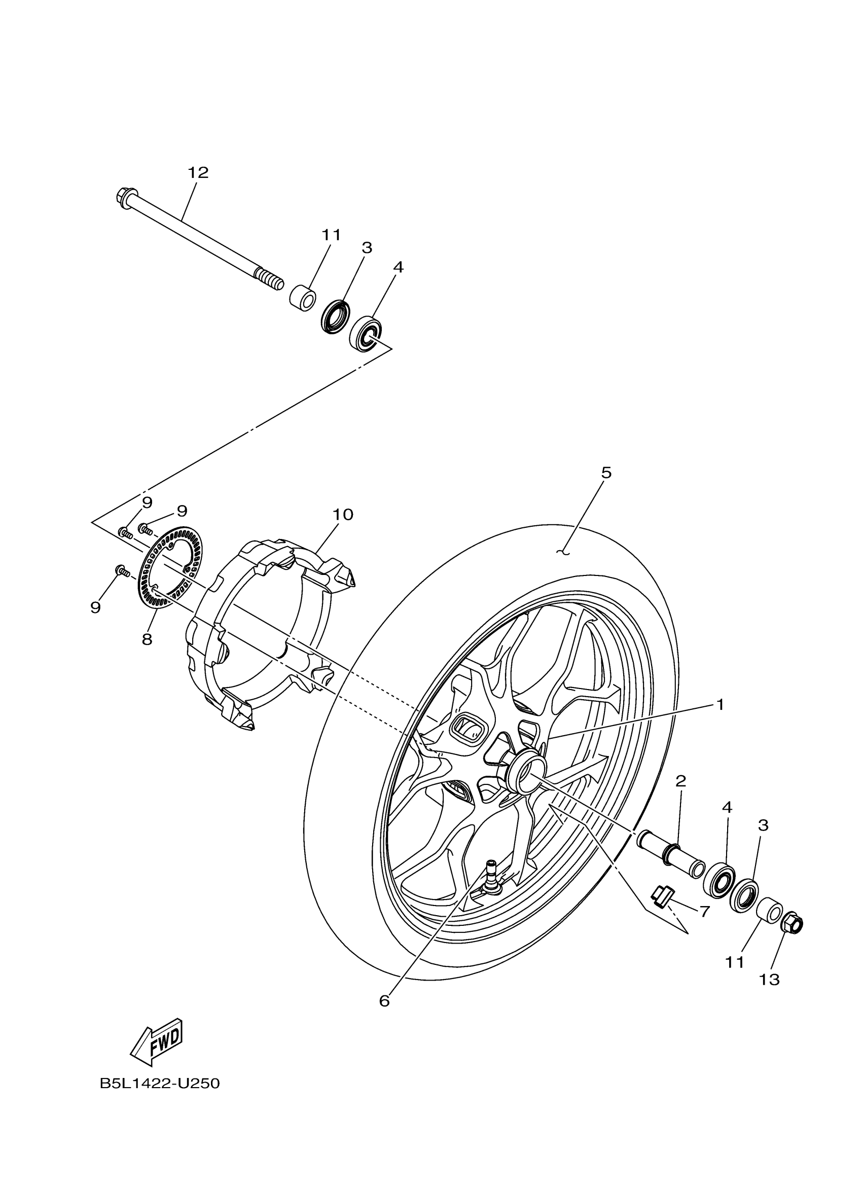 Yamaha YZFR3AMT (YZFR3 ABS) B5LL1 2021 FRONT WHEEL Diagram