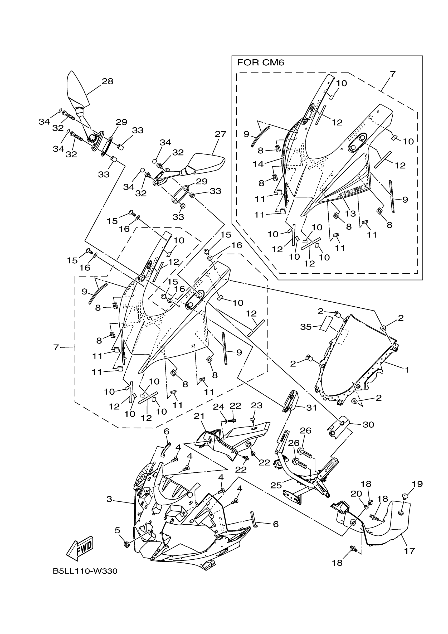Yamaha YZFR3AMT (YZFR3 ABS) B5LL1 2021 WINDSHIELD Diagram